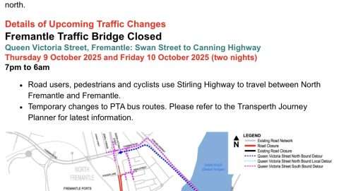 Closure of the shared path over the Fremantle Traffic Bridge during periods when piling works are taking place.