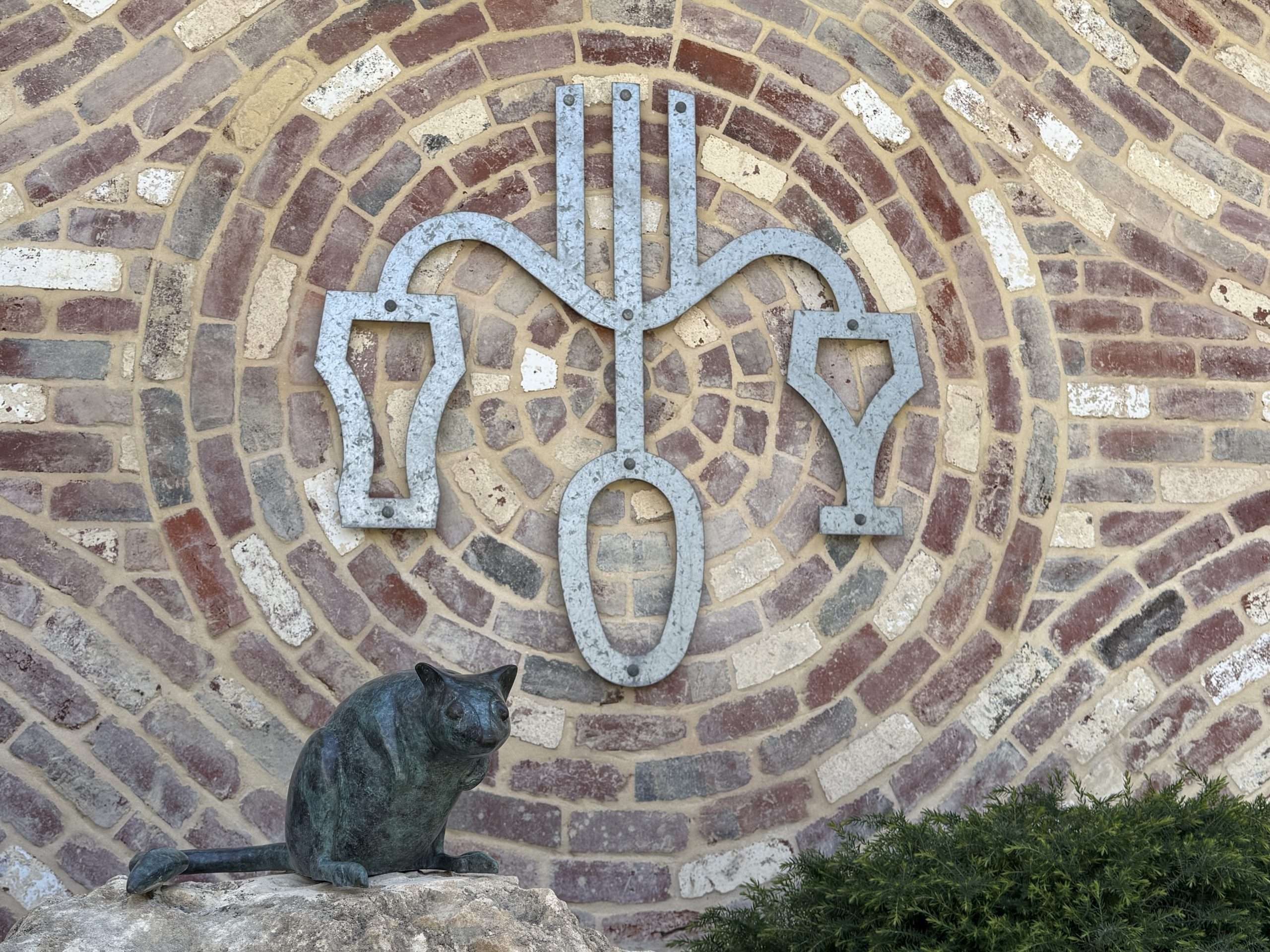 There is also a lovely mosaic of ‘The Scales of Justice’, modified to incorporate a beer and wine glass and a fork. New arty Corten steel signs are now in place.