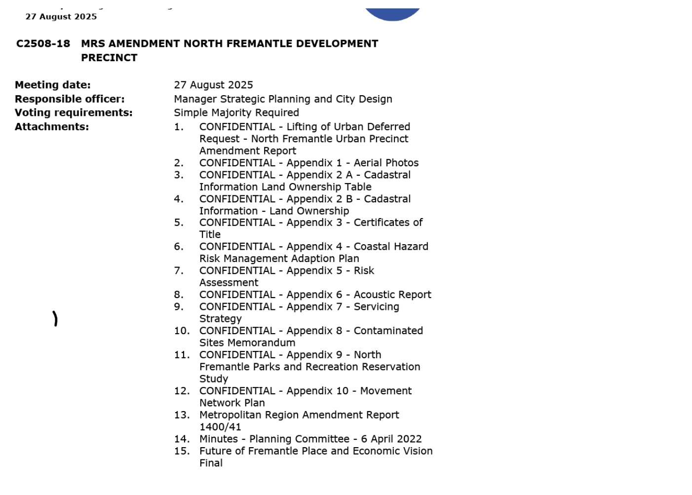 Apart from anything else, it seems public comment is stymied because so many materials are considered by the developers to be ‘Confidential’, as this excerpt from the Council agenda for 27 August shows –