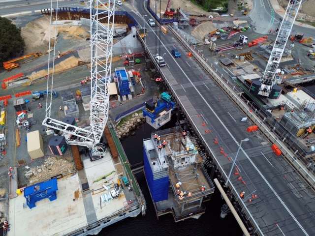 And here’s a great image showing the first segment lift. The segments are slightly higher than the existing bridge, and the top of these segments will be the new road level.