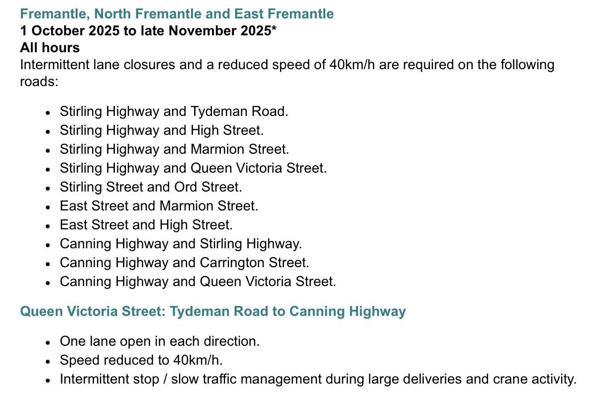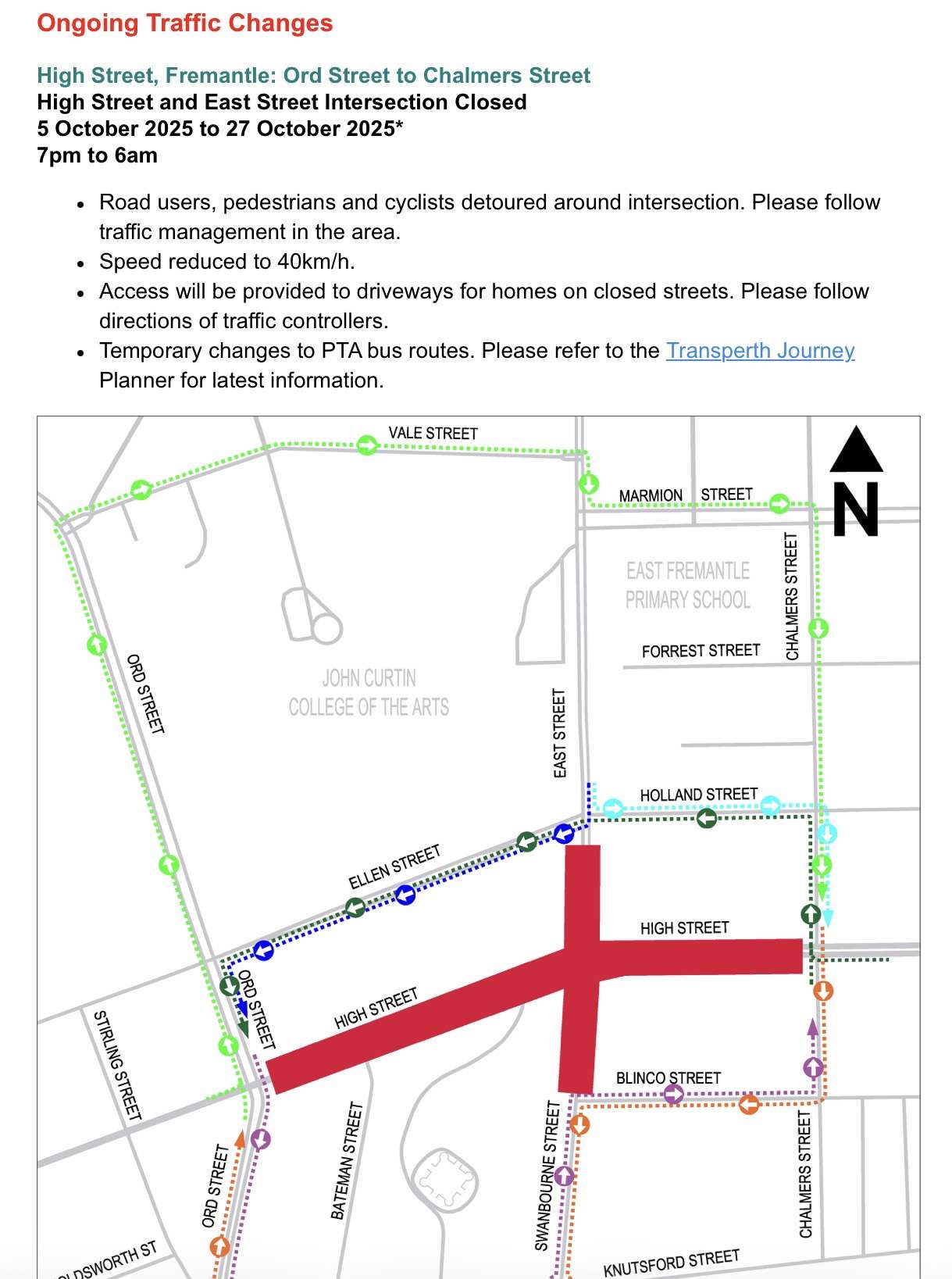 Have you been planning your alternative strategies? Like simply giving up any ideas of driving from north of the River along Stirling Highway, over the Stirling Bridge, into Freo any time of the day, but especially from mid afternoon until late. And catching trains whenever possible. And so on and so forth.