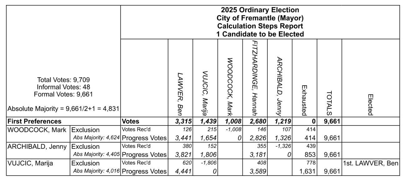 After a strongly contested Mayoral election in City of Fremantle, early this afternoon, when the WA Electoral Commission eventually finished counting the votes, Ben Lawver was declared ‘1st’.