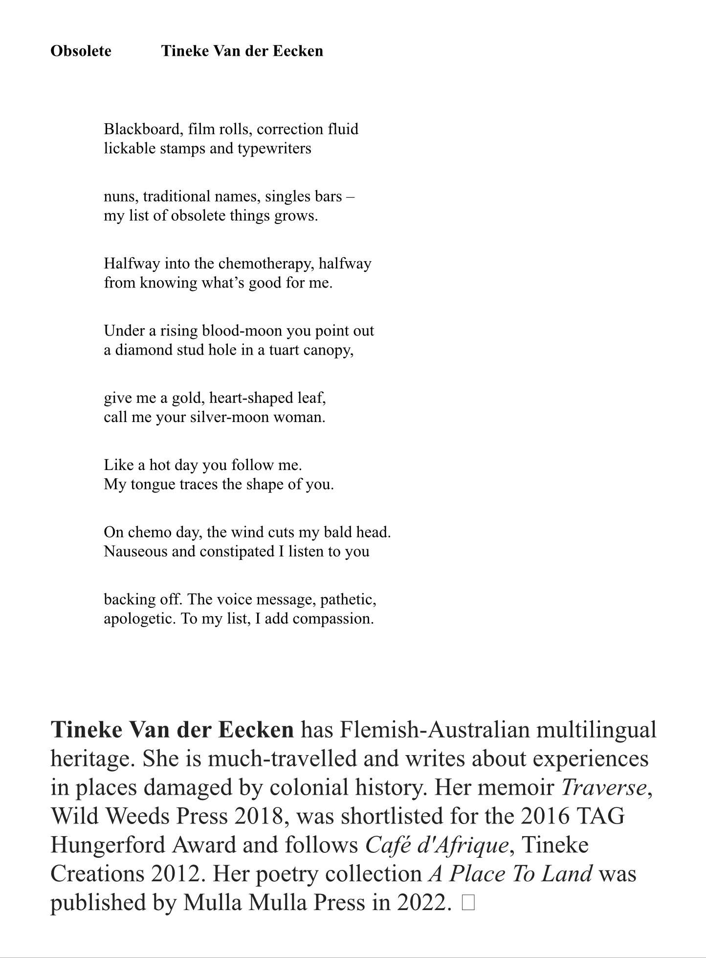 Today, we are pleased to bring you Obsolete by Tineke Van der Eecken.