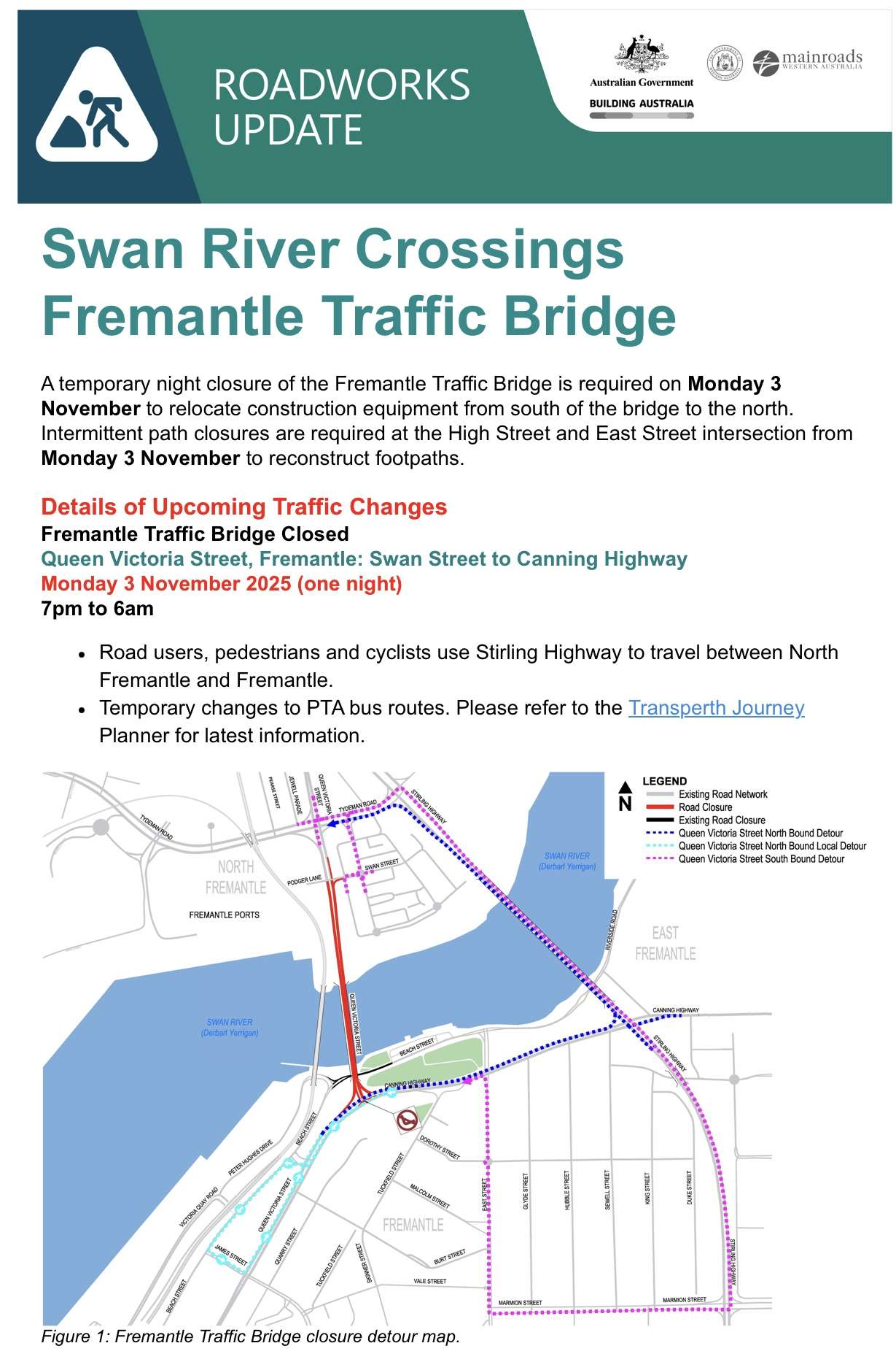 Here’s the Main Roads WA notice of the latest nightly closure.