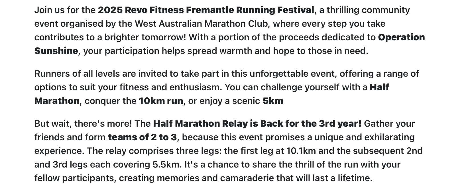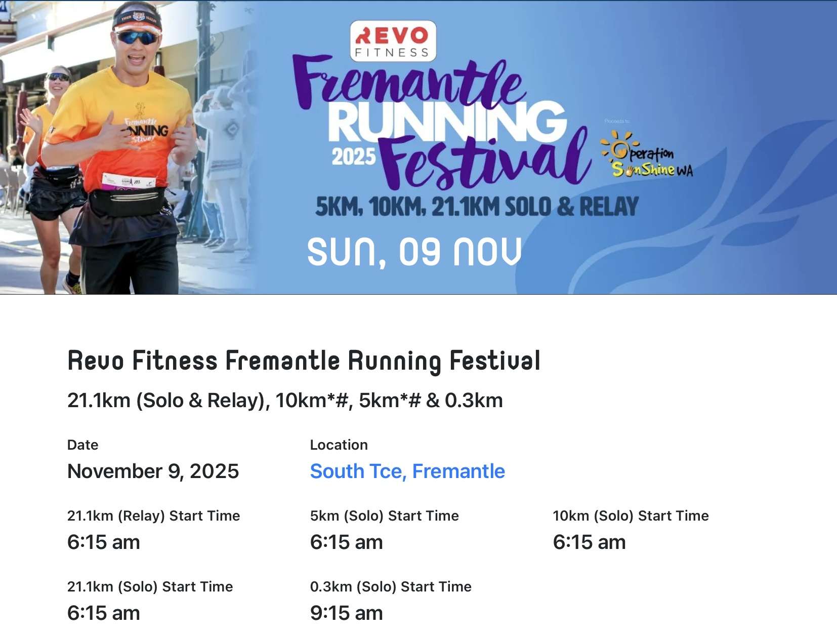 Freo folk will have seen the notices up and down Marine Terrace from Cliff Street in the West End to Capo D’Orlando Drive, South Freo advising that this Sunday, 9 November 2025, the Fremantle Running Festival is on, and that restrictions apply in some areas, like sections of Marine Terrace, from 8 am Saturday.
