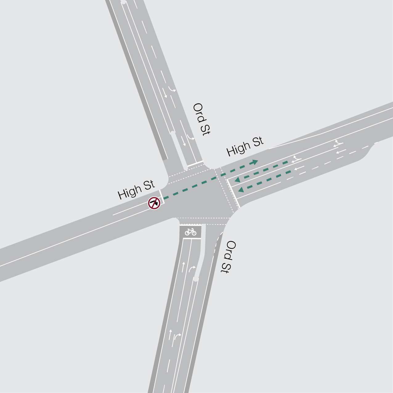 - Removal of right-turn arrow from High Street eastbound into Ord Street.