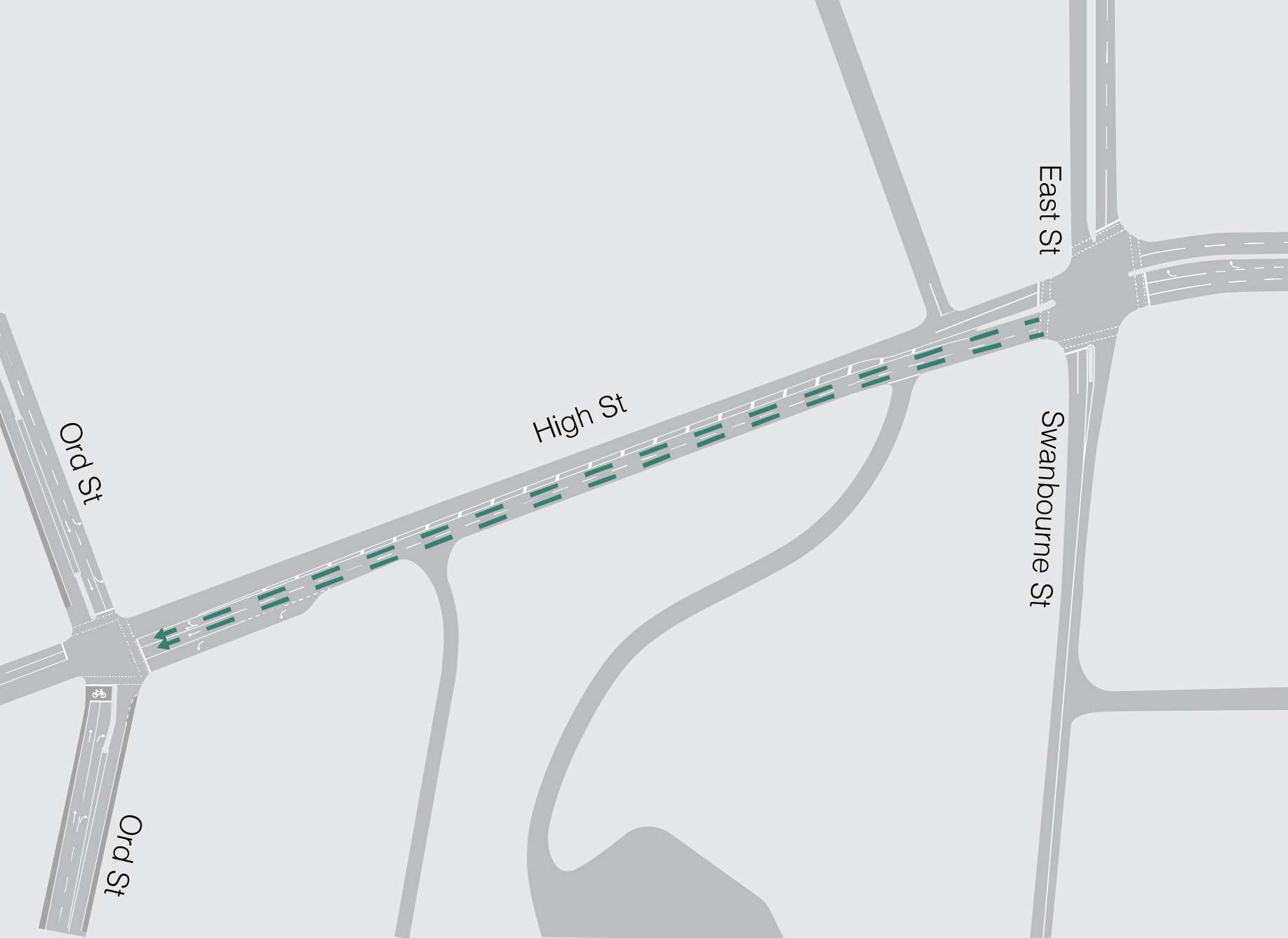- Additional lane on High Street westbound between East and Ord Streets into Fremantle.