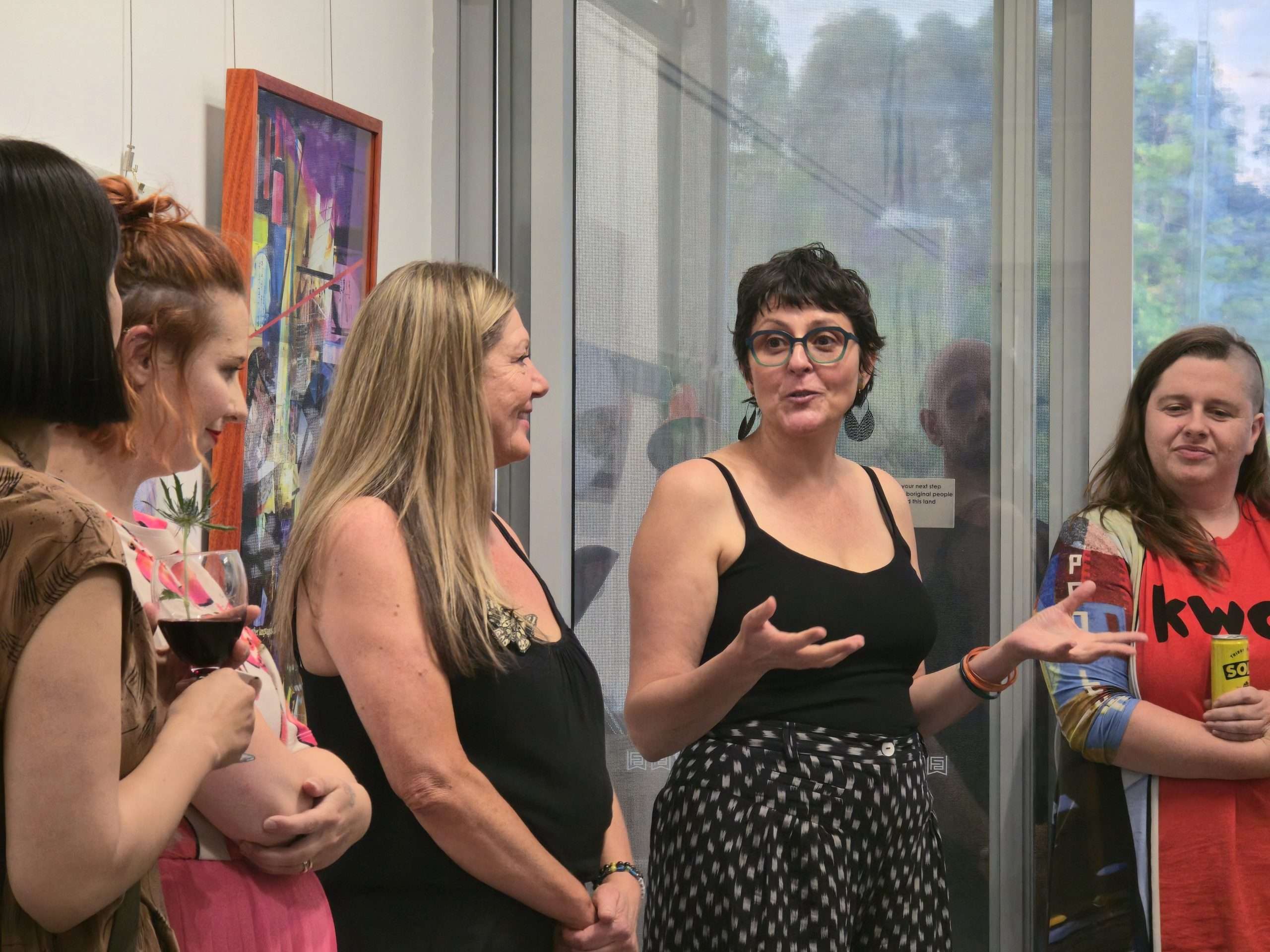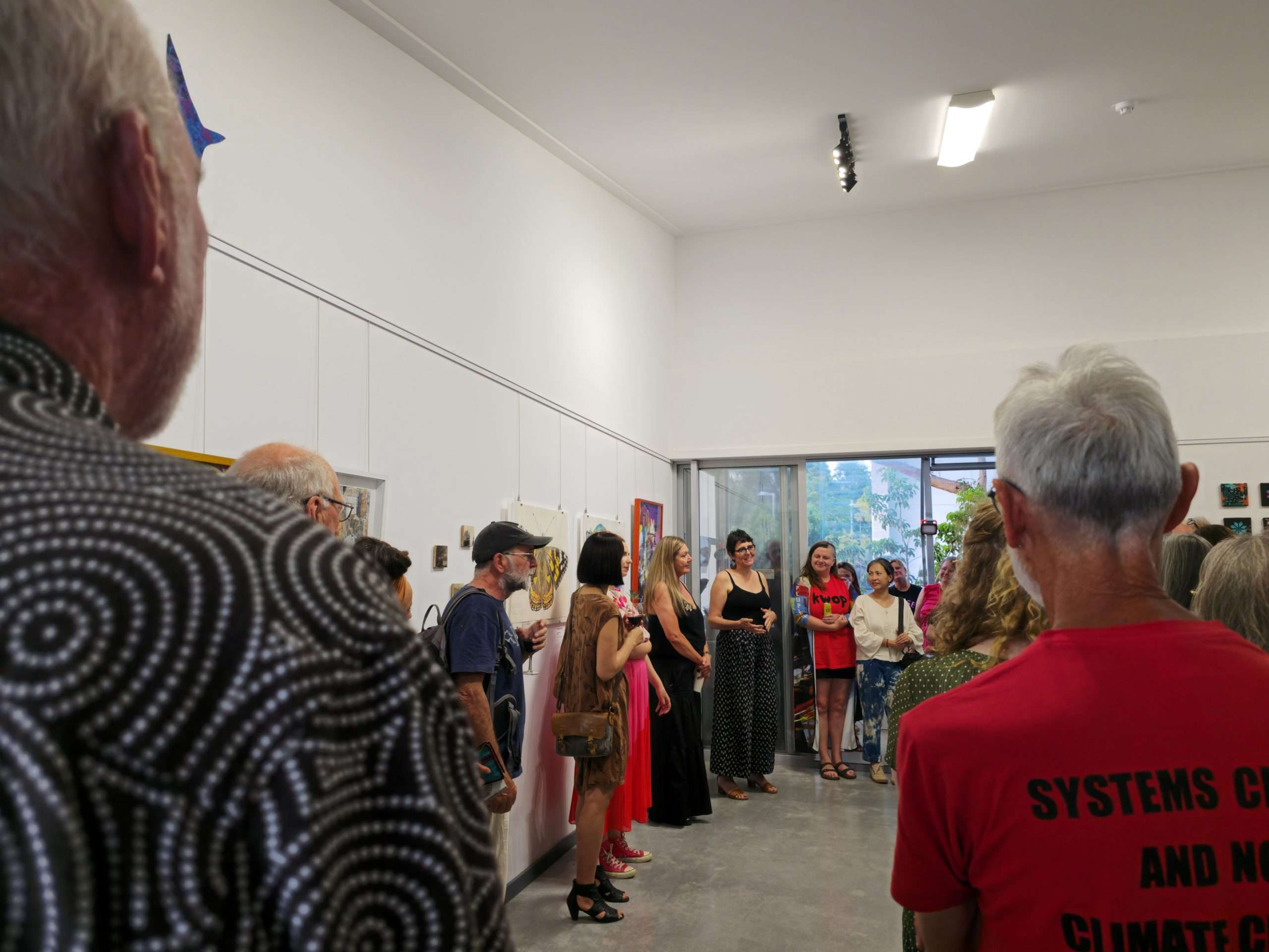 Tonight, I finally got to peek inside SHACC (Sustainable Housing for Artists and Creatives), our local proud artists’ collective gallery space run by artists who live in and run the housing cooperative. Nestled amongst all the greenery, on the site of the old Kim Beazley School grounds and surrounds, opposite leafy Booyeembara Park and charming dwellings.