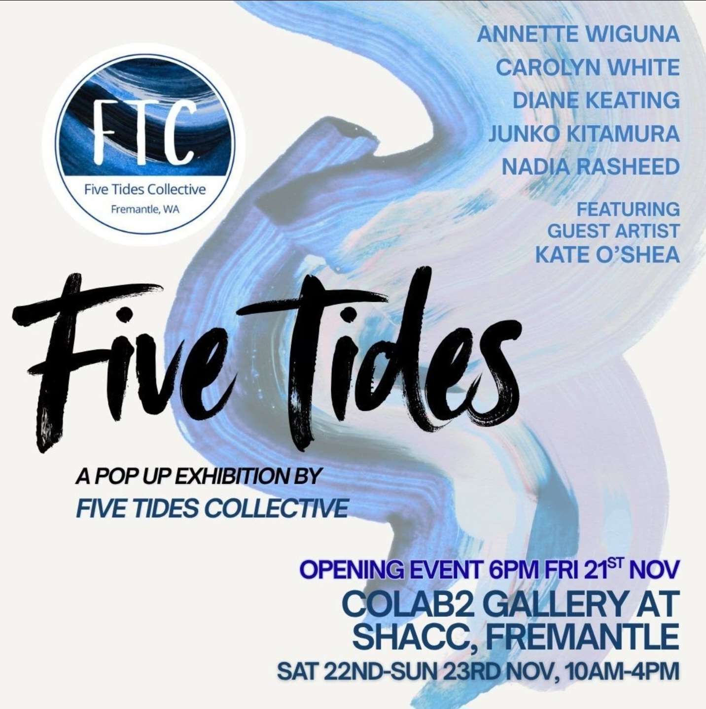 The Five Tides Collective exhibition is open over this weekend, 22 and 23 November 2025 from 10am – 4pm.