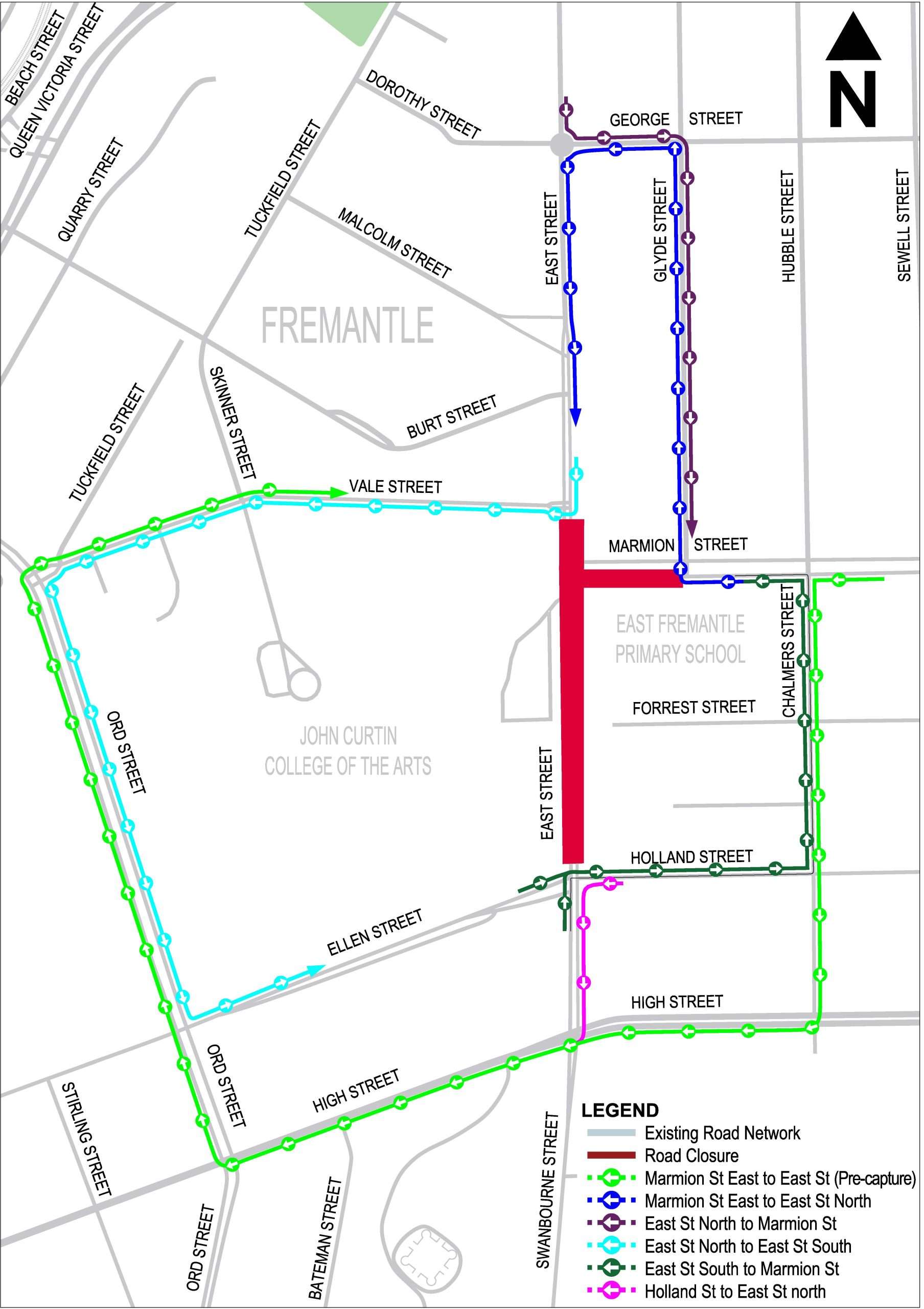 - Full closure of Marmion Street, between Glyde Street and East Street.