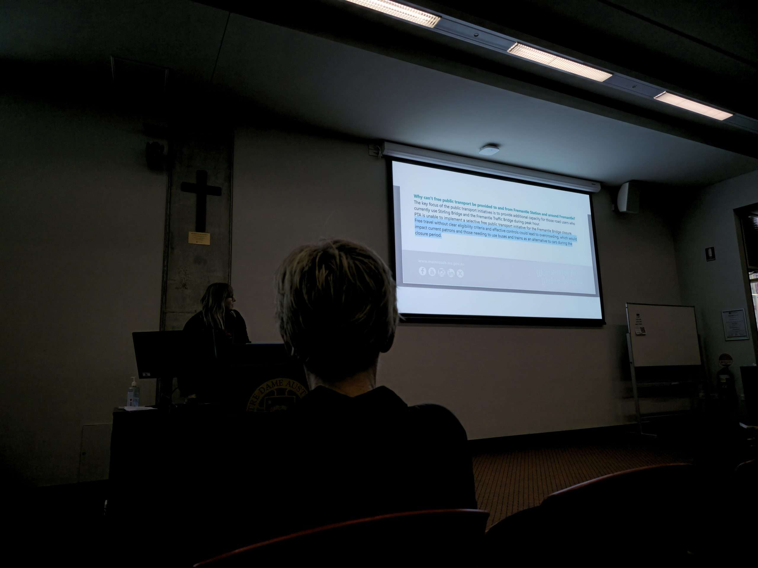 Community members during question time expressed nowhere near enough has been done to deal with the gridlock already eventuating, to support affected businesses, and promote alternative transport modes. The status quo, including an incomplete PSP network, cyclists at risk of falling over low railings or squeezing past each other on crosswalks in the path of trucks, taking an hour to travel only a few kilometres in traffic, and enduring all this without a CAT bus is unacceptable. More communication with the State Government needs to make it clear that greater funding and collaboration with locals are required.