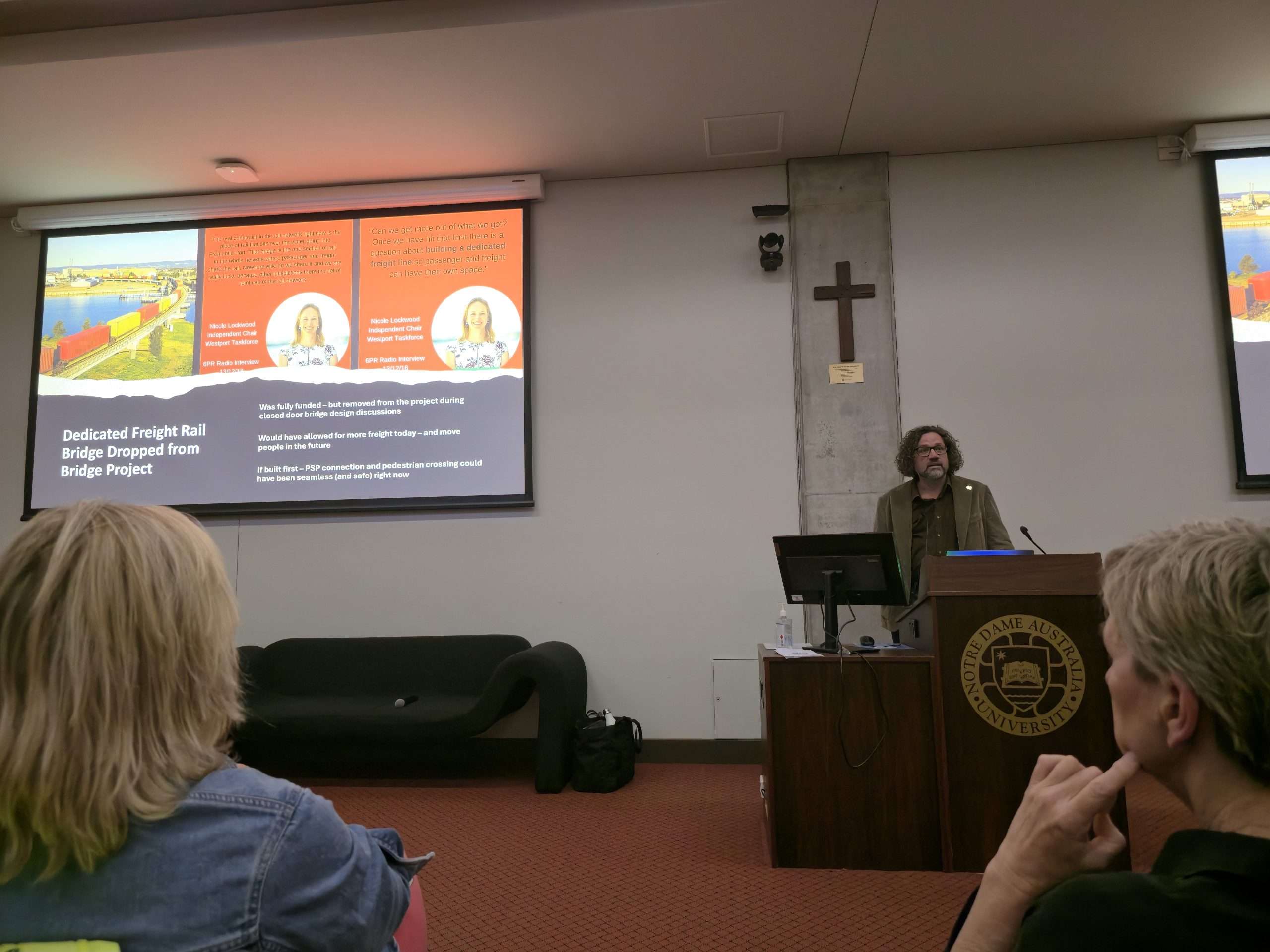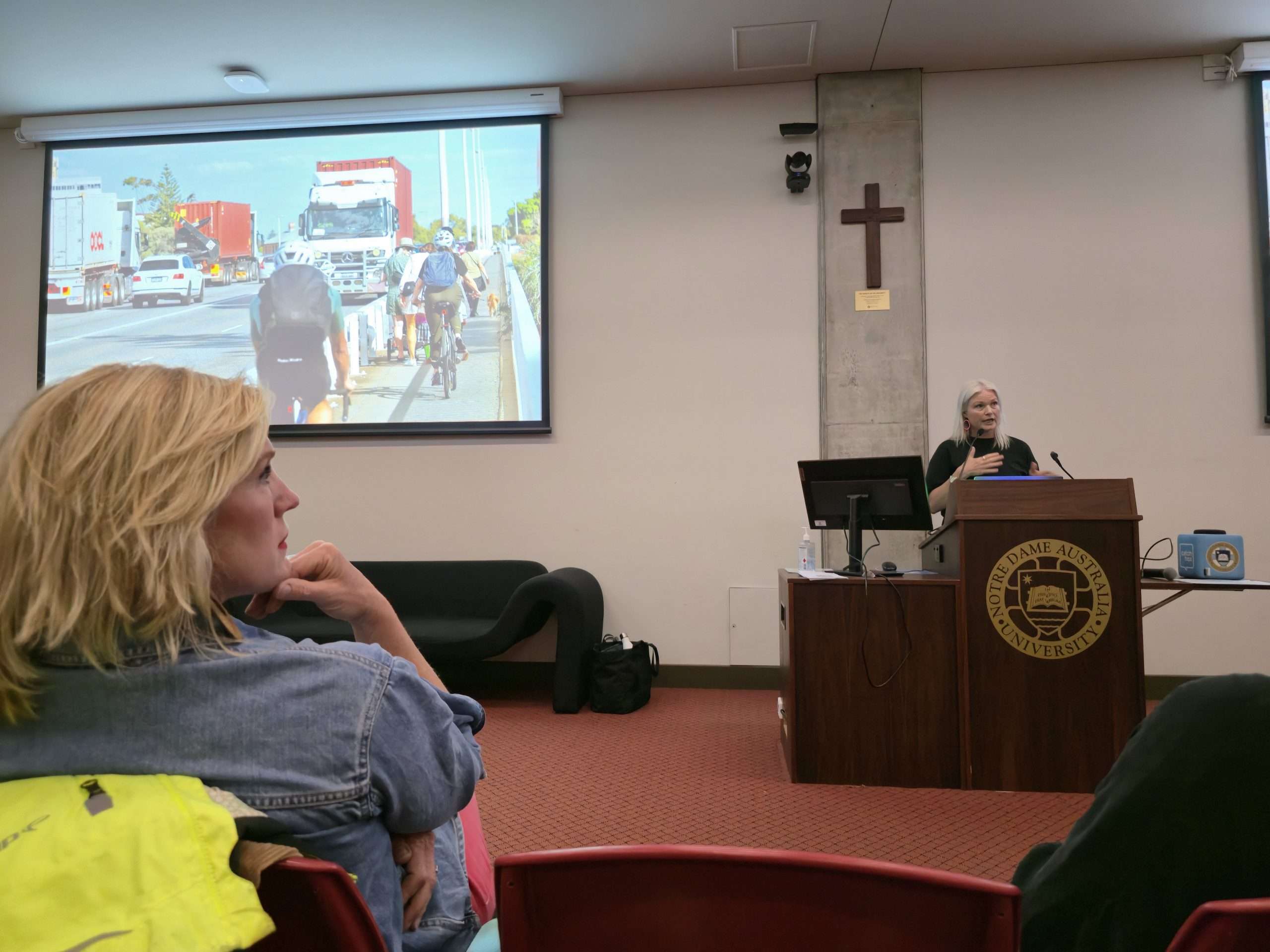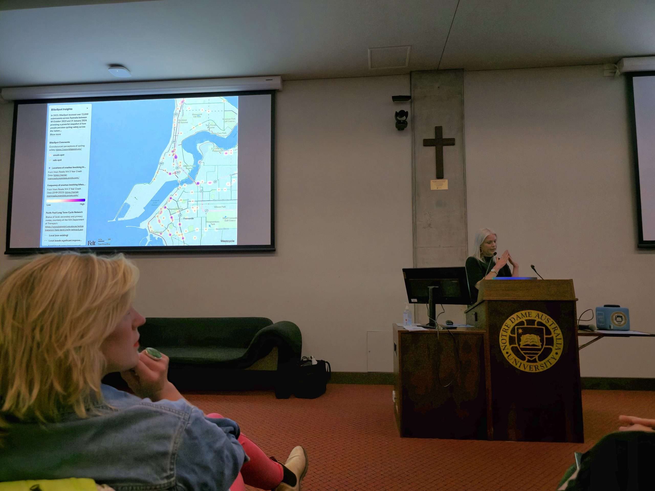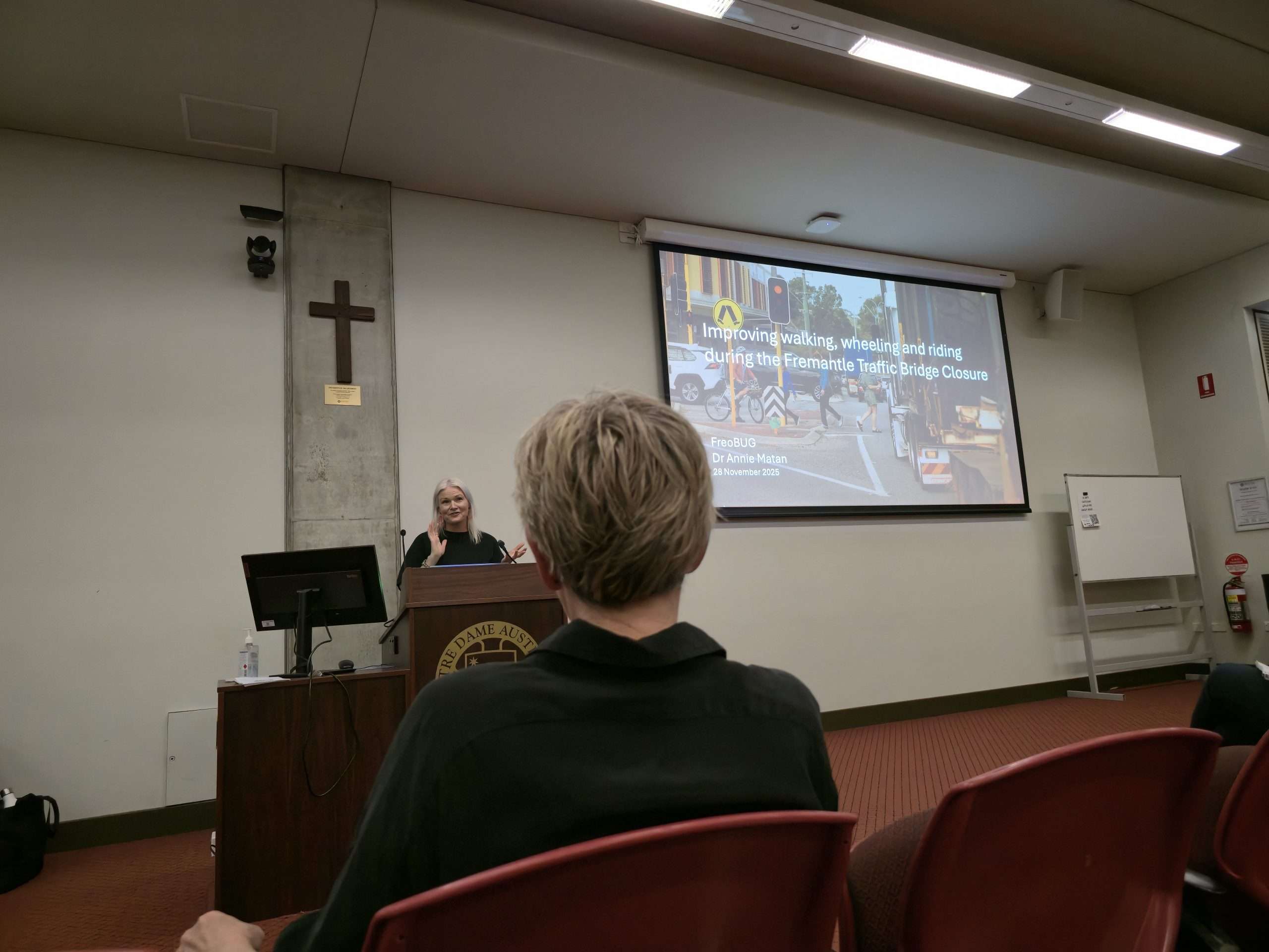 There is clear consensus from tonight’s audience echoed by the speakers including Dr Annie Matan: communities feel ignored and dismissed by the State Government. We have lost our CAT bus yet areas such as Scarborough have transit fully funded by the State. Main Roads has vast, unchecked power and prioritises cars to the exclusion of all other commuters yet due to their own staffing shortages their assessment timeframes for locally proposed solutions are slow and protracted. Cycling in North Fremantle is unsafe and getting worse with the Fremantle Traffic Bridge works. This feedback has been provided consistently for decades and has fallen on unsympathetic ears. But there are many small interventions, or “low hanging fruit”, that could be implemented even on a trial basis to improve the matter, argues Dr Annie Matan from FreoBUG. That includes “wombat crossings”, shared “slow streets”, and better wayfinding signage. Our recent write up by Shipping News editor Michael Barker provides further detail here.