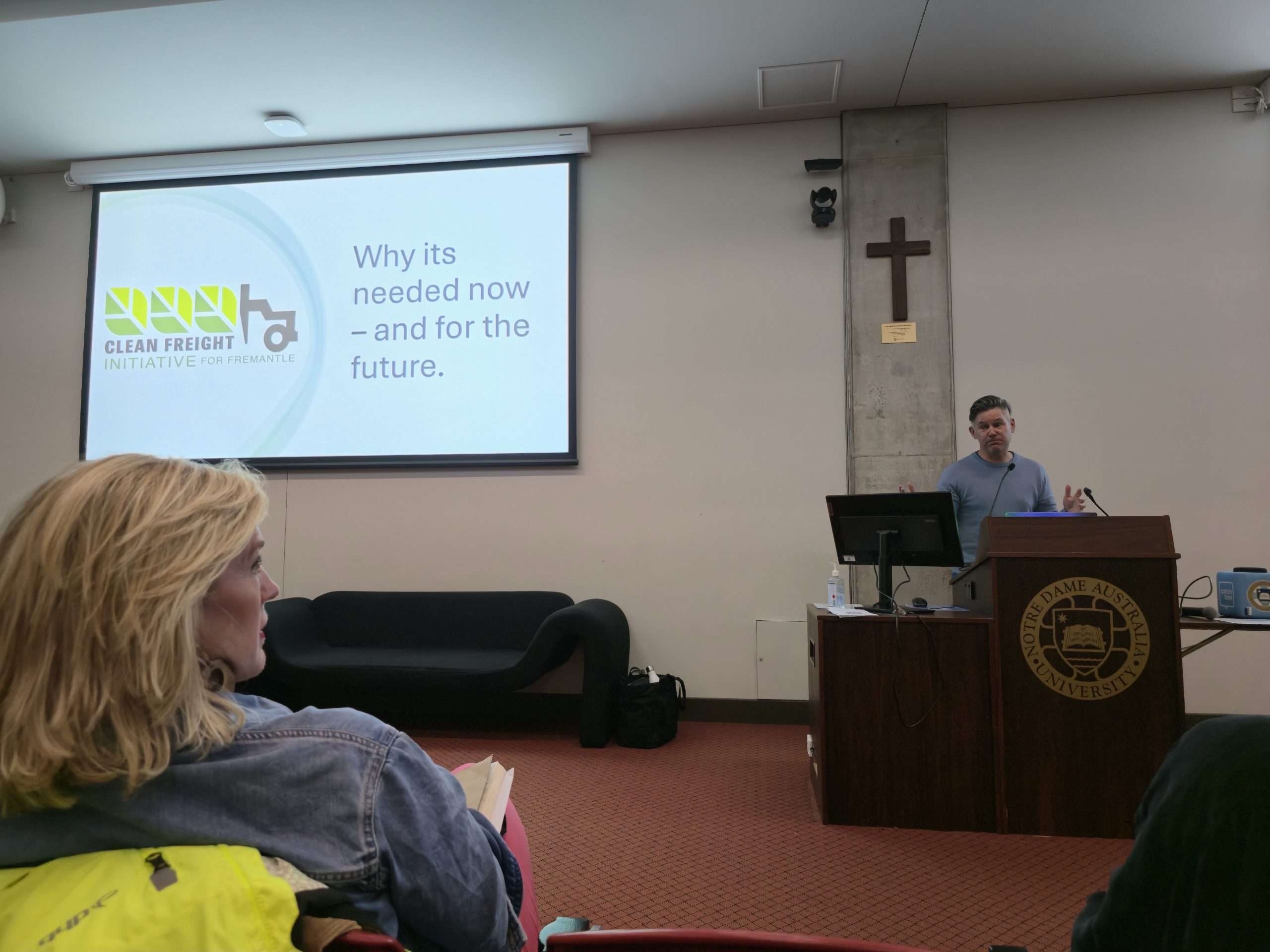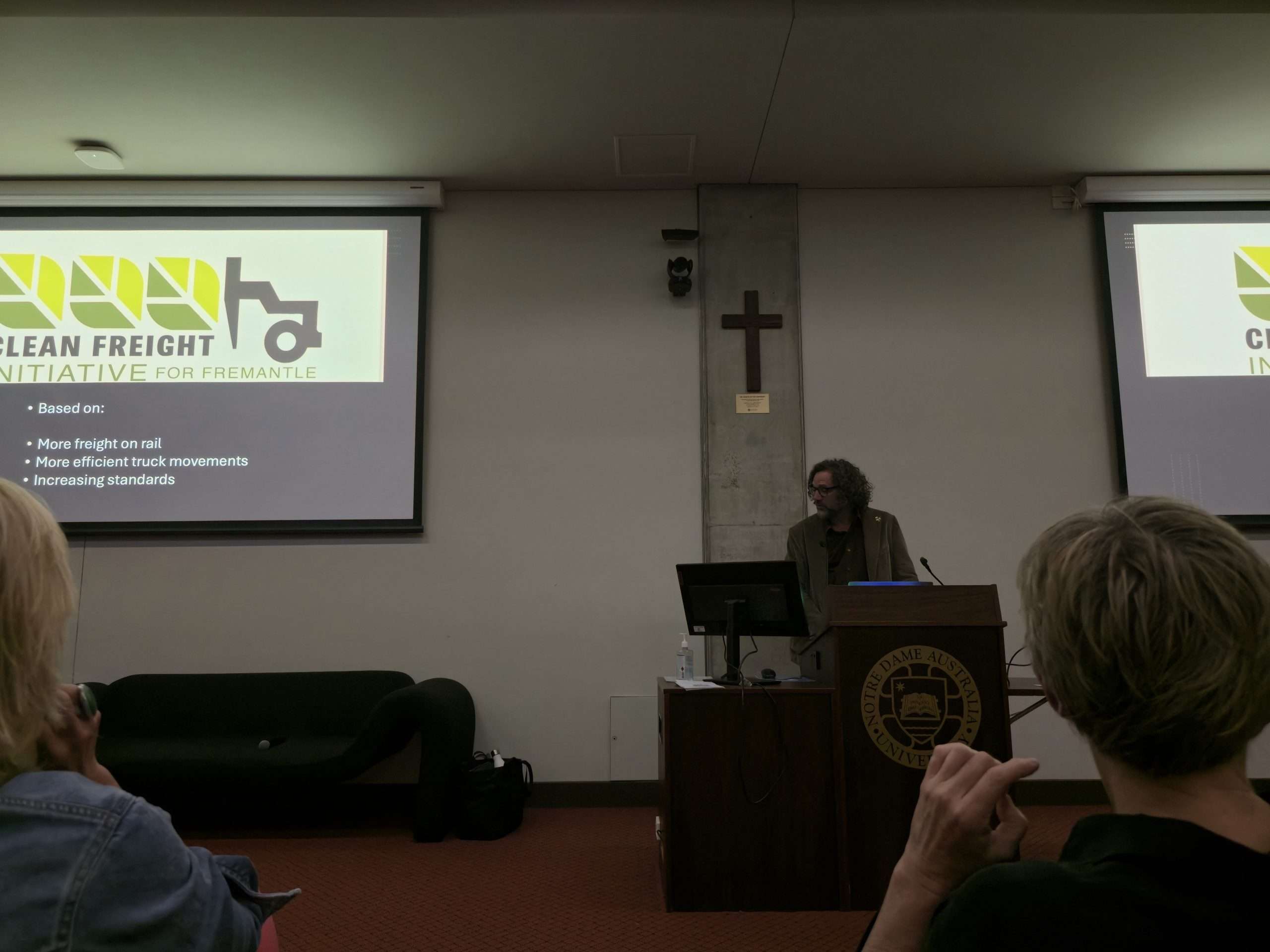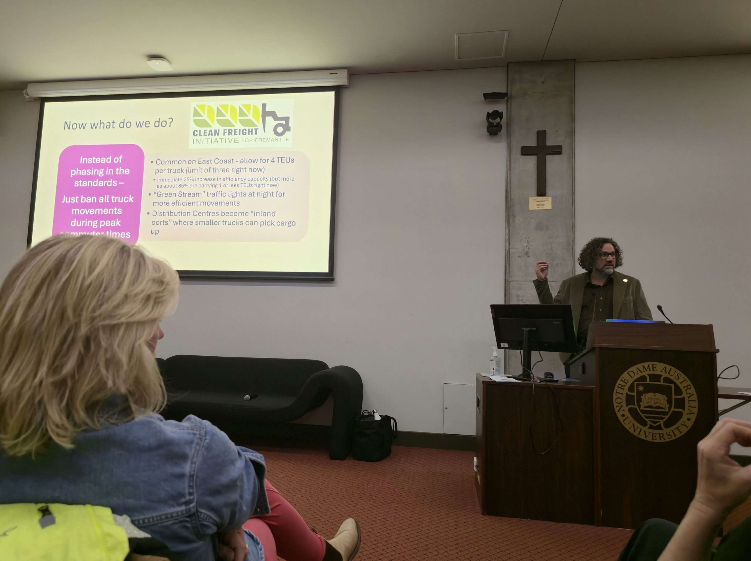 While Fremantle members Josh Wilson MP (who we understand was an apology on the night) and Simone McGurk MLA were unable to attend, we were very lucky to hear from City of Fremantle Councillor Melanie Clark, East Fremantle councillor Rebecca Cutter (an avid cyclist with a shocking cautionary tale), Dr Annie Matan from FreoBUG (Bicycle Users Group), and even former Mayor and now Greens MP Dr Brad Pettit who kindly held the fort and gave us an overview of the Clean Freight initiative based on his own work on it during the Council days until Mayor Ben Lawver arrived following a school meeting.
