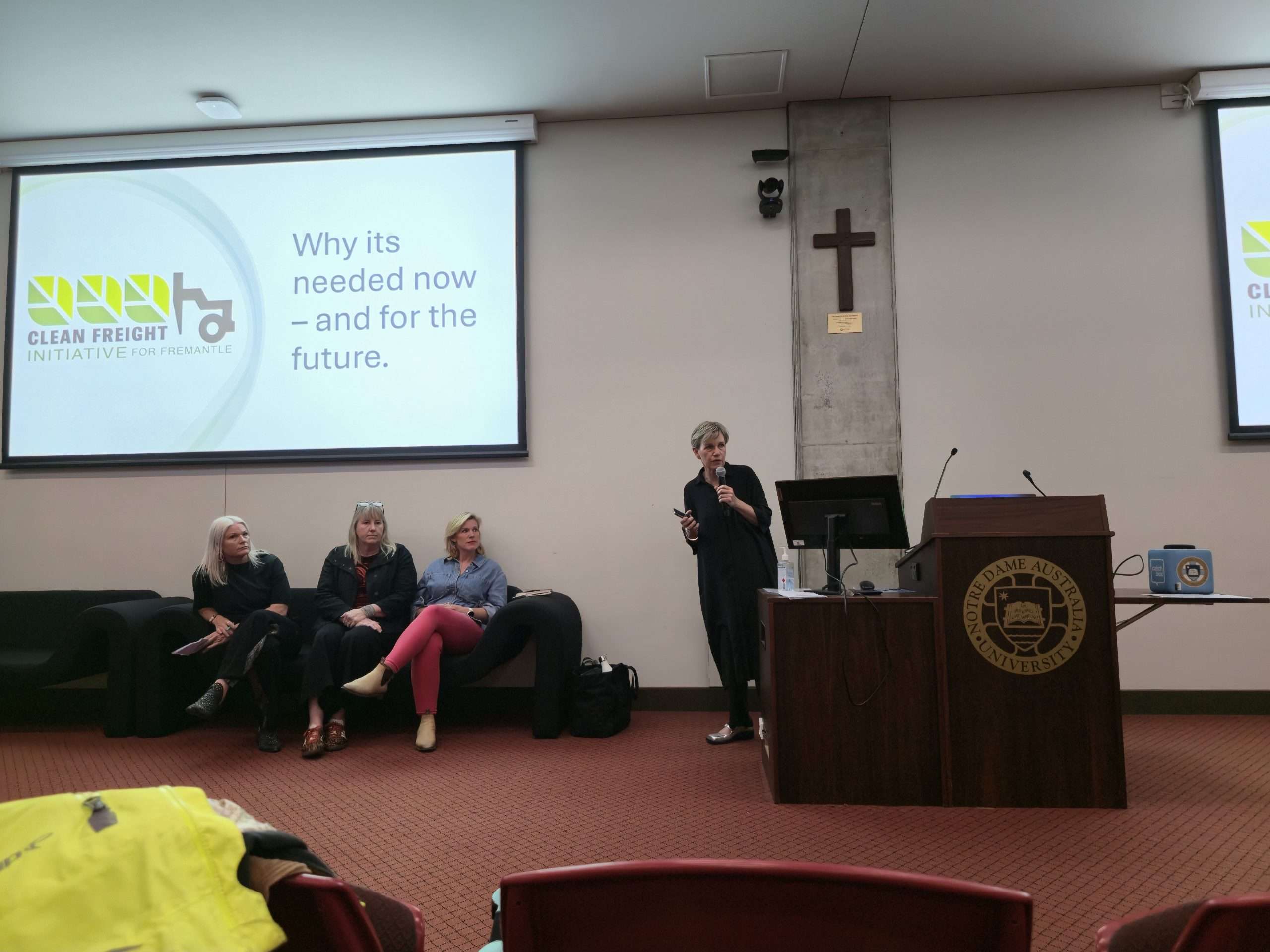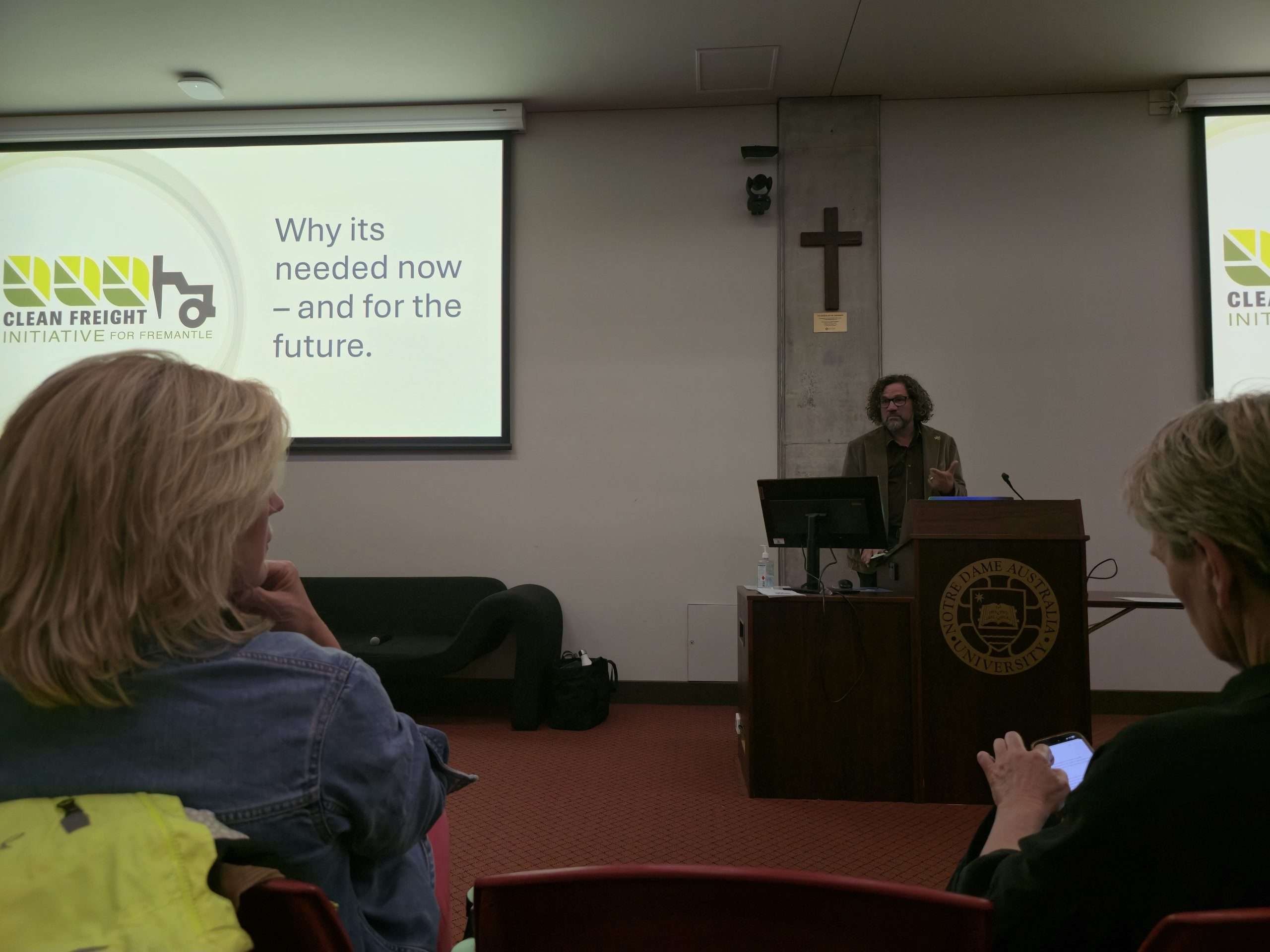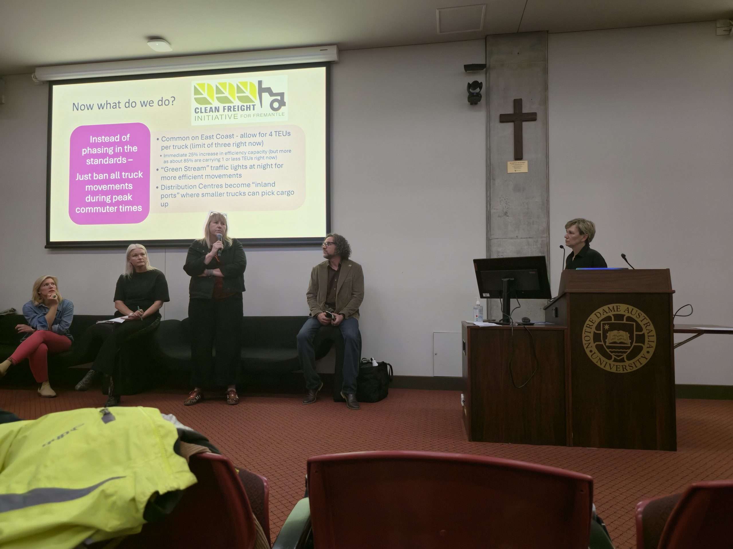 While Fremantle members Josh Wilson MP (who we understand was an apology on the night) and Simone McGurk MLA were unable to attend, we were very lucky to hear from City of Fremantle Councillor Melanie Clark, East Fremantle councillor Rebecca Cutter (an avid cyclist with a shocking cautionary tale), Dr Annie Matan from FreoBUG (Bicycle Users Group), and even former Mayor and now Greens MP Dr Brad Pettit who kindly held the fort and gave us an overview of the Clean Freight initiative based on his own work on it during the Council days until Mayor Ben Lawver arrived following a school meeting.