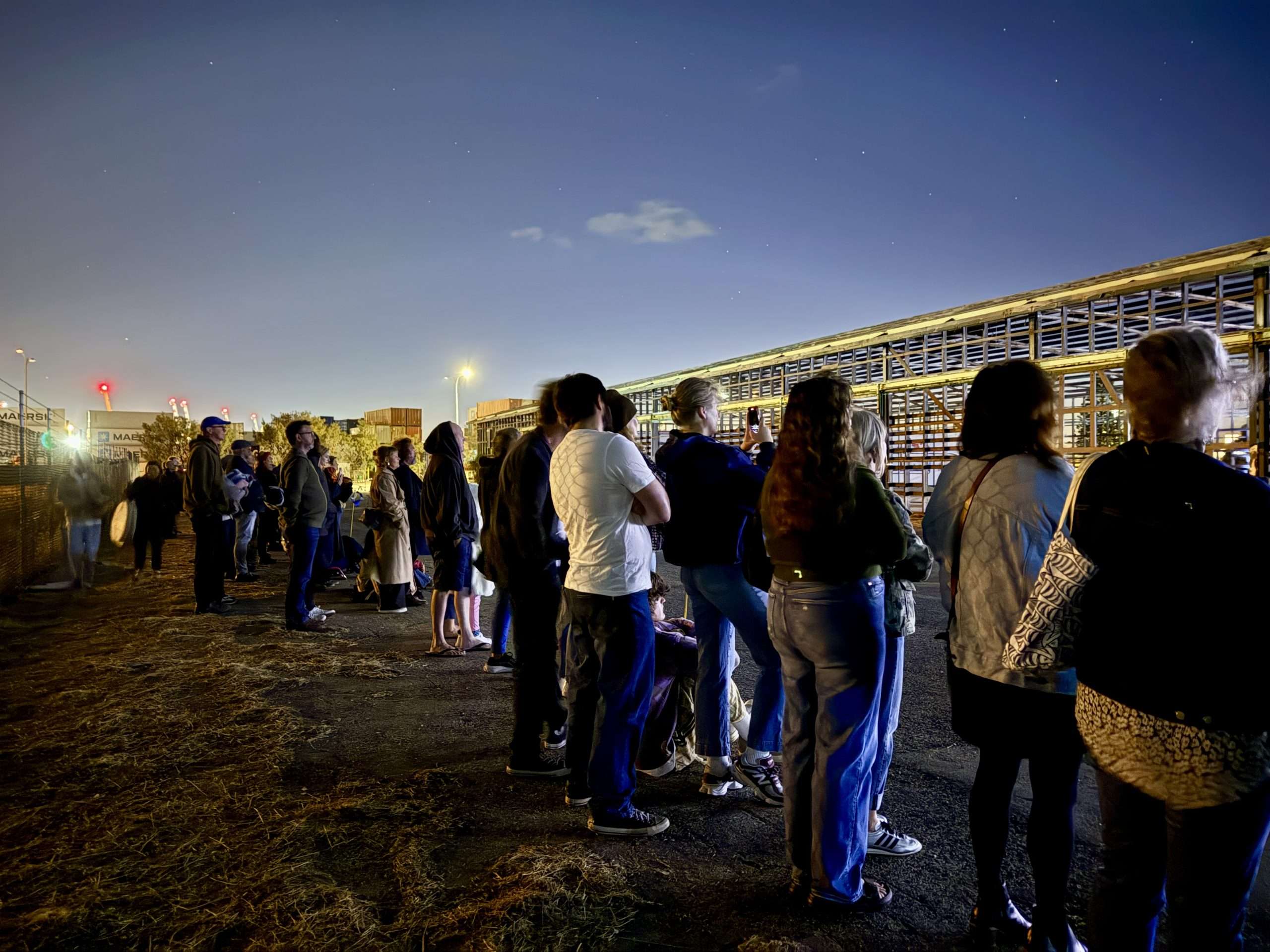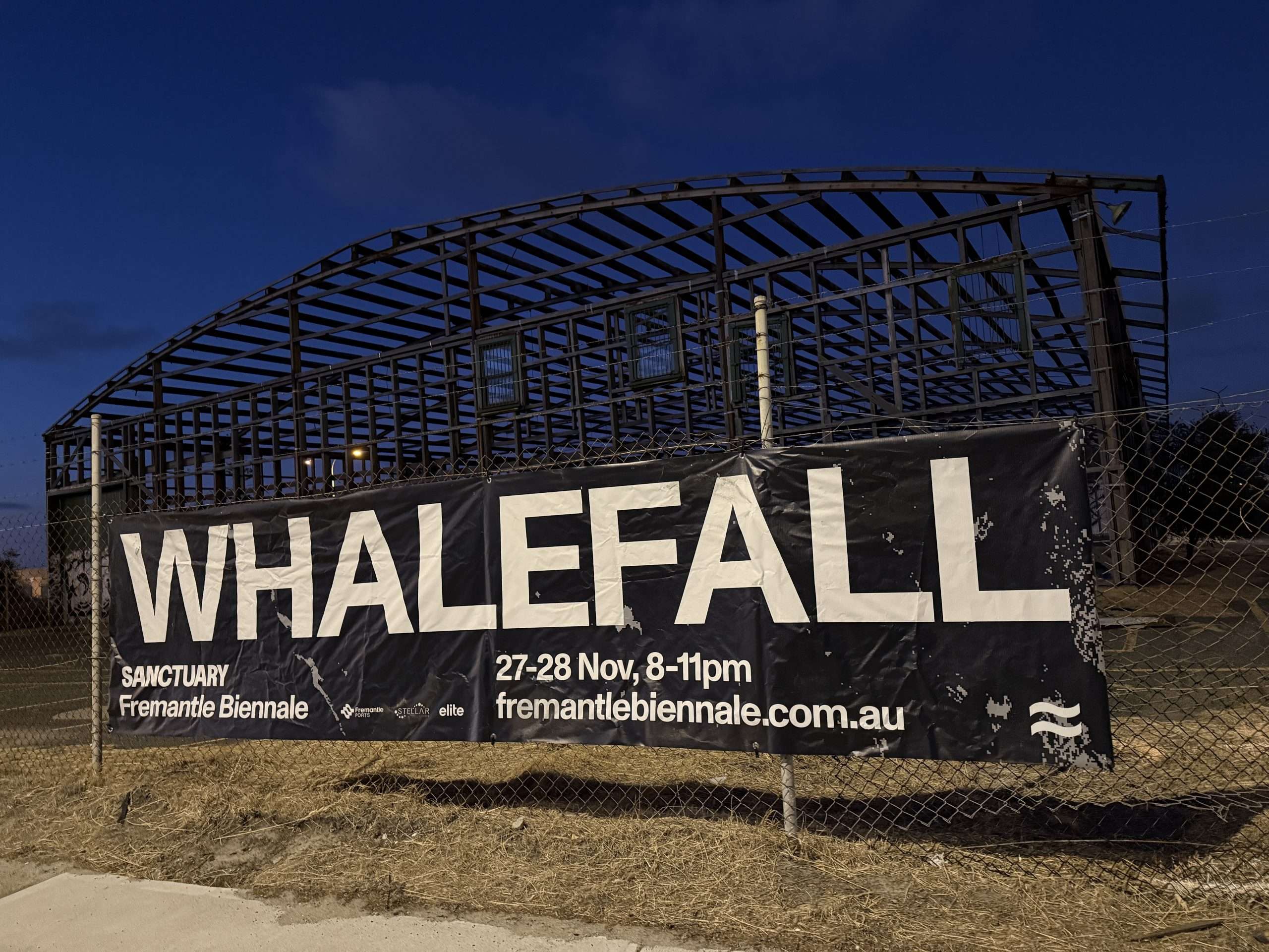 As the Sun headed to the oceanic horizon, a crowd gathered to witness Whalefall in the old Port Beach Shed. It’s one of Fremantle Bienalle 2025’s Sanctuary-themed events.