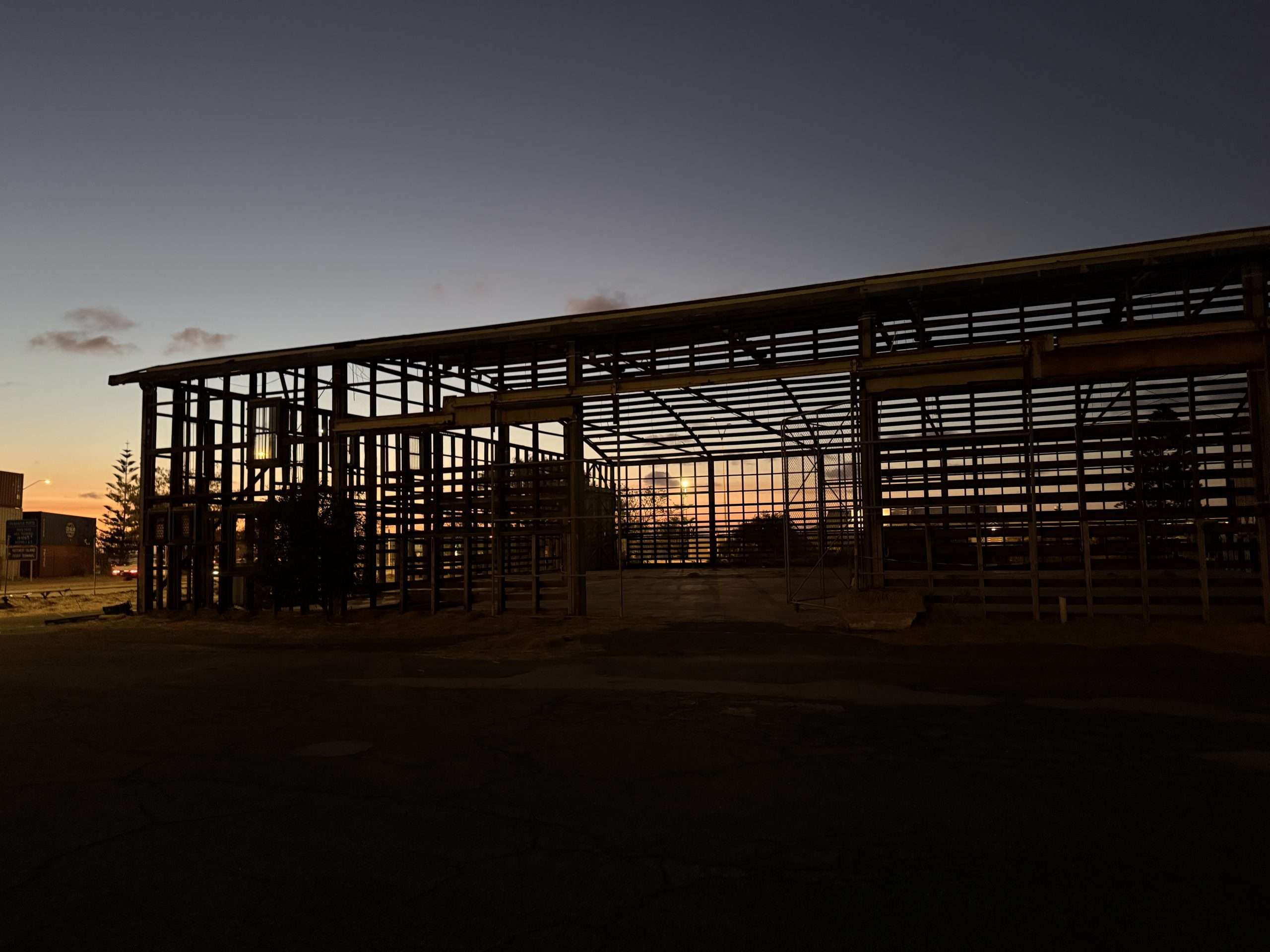 As the Biennale info advises, Artists Ben Frost and Tom Mùller collaborate on Whalefall, a new temporary work conceived in response to the landmark Port Beach Shed — a skeletal, stand-alone structure that stands sentinel at the intersection of Tydeman and Port Beach Roads, gazing out over the vast Indian Ocean.