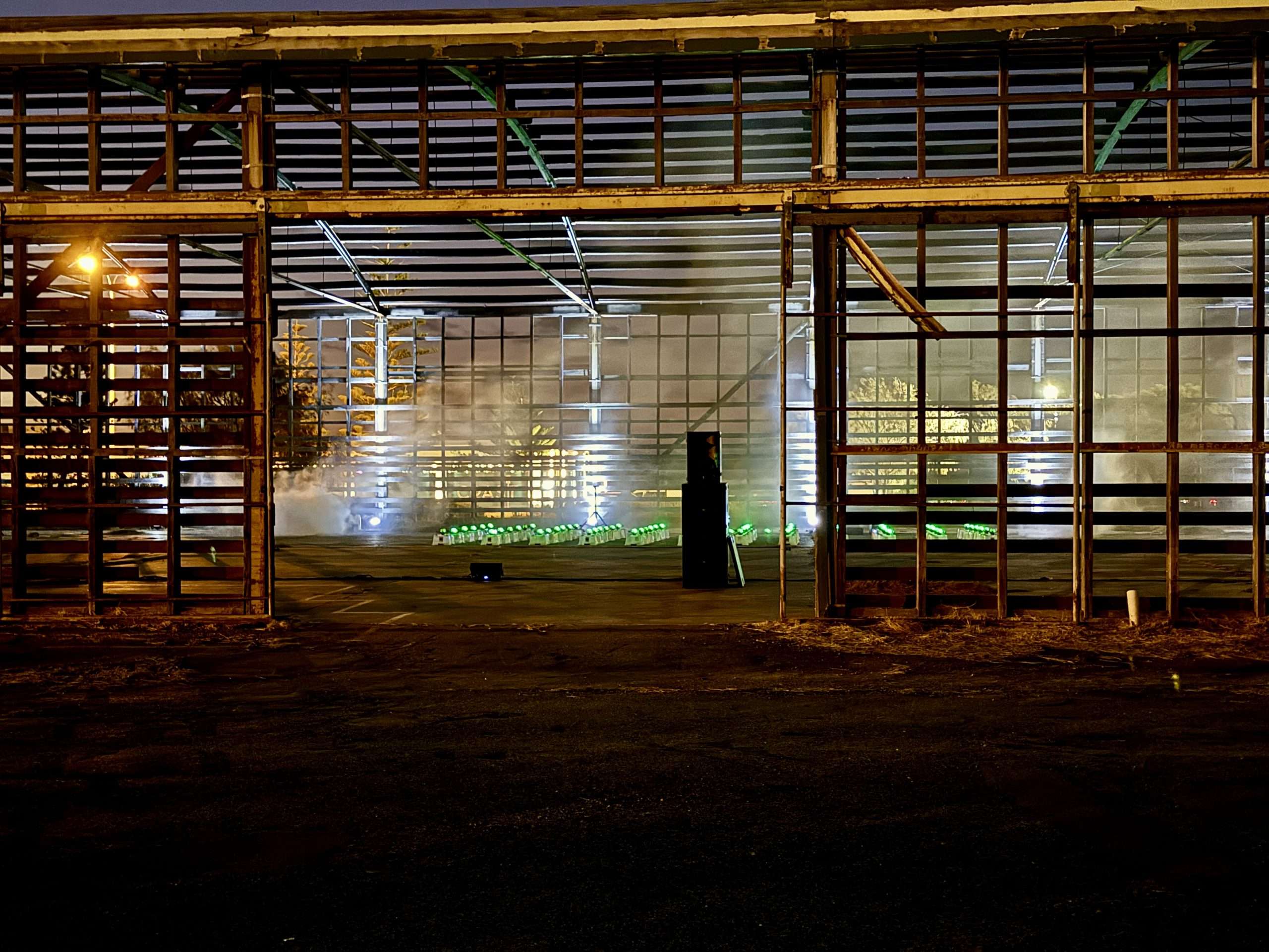 Whalefall transforms the existing building edifice into a sanctuary of sound and light — a spectral memorial to this marine giant. The structure becomes an illuminated carcass, pulsing with sonic echoes that reference the whale’s extraordinary acoustic world. Sperm whales communicate and echolocate through powerful clicks, trumpets, and codas, with vocalisations reaching up to 230 decibels — the loudest of any animal on Earth.