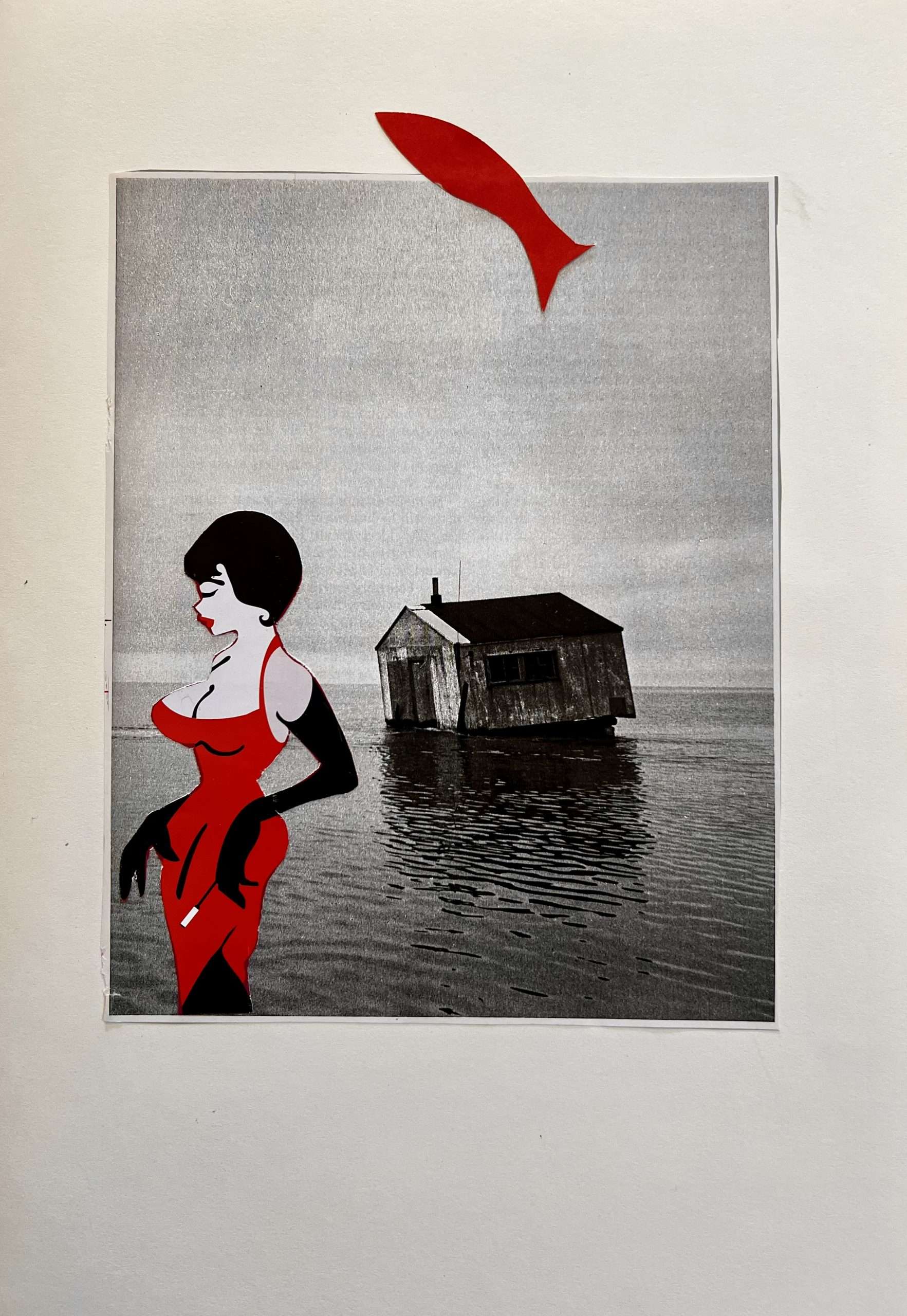 Rachel explains that: ‘In a new series of female gaze collages and large scale assembled paper & object sculptures using up-cycled materials, the critical loss of the ocean’s health and our relationship is explored’.