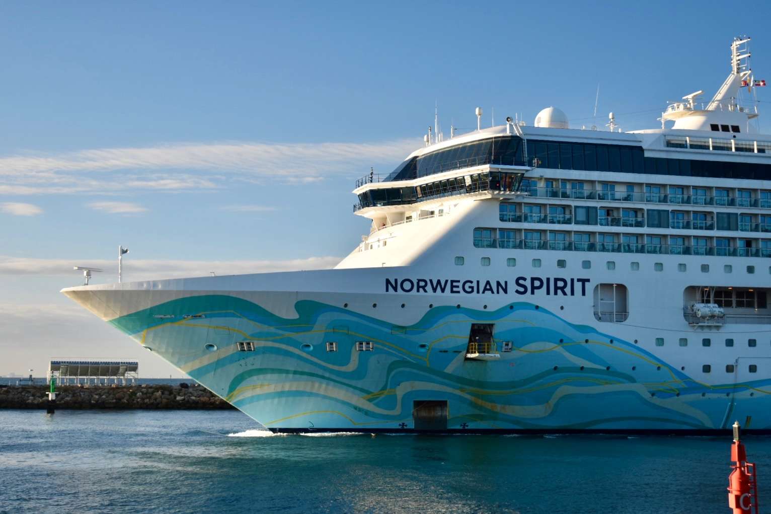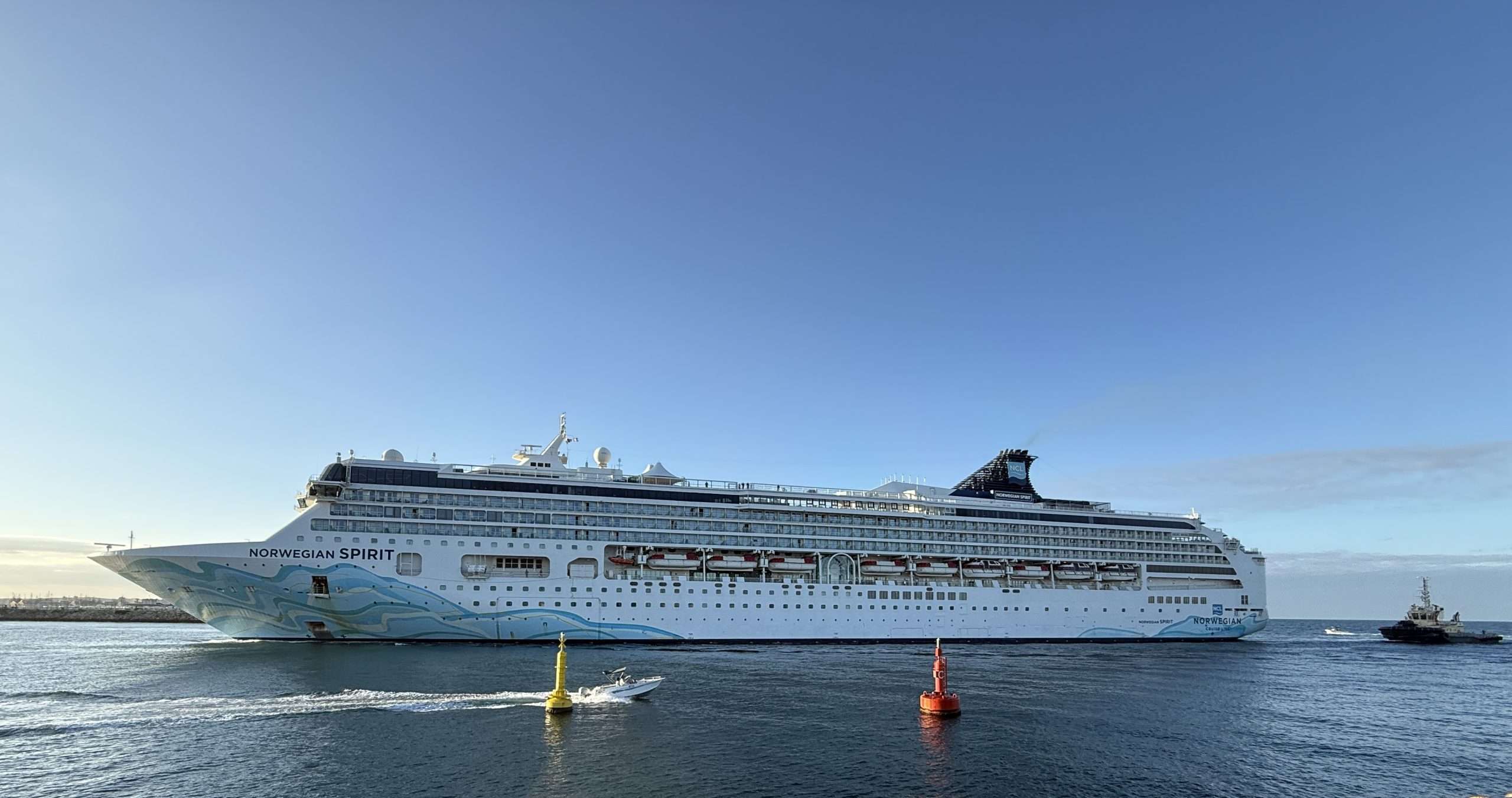 The Norwegian Spirit is currently undertaking a 19-day, one-way cruise from Singapore to Sydney and is just in Freo for the day.
