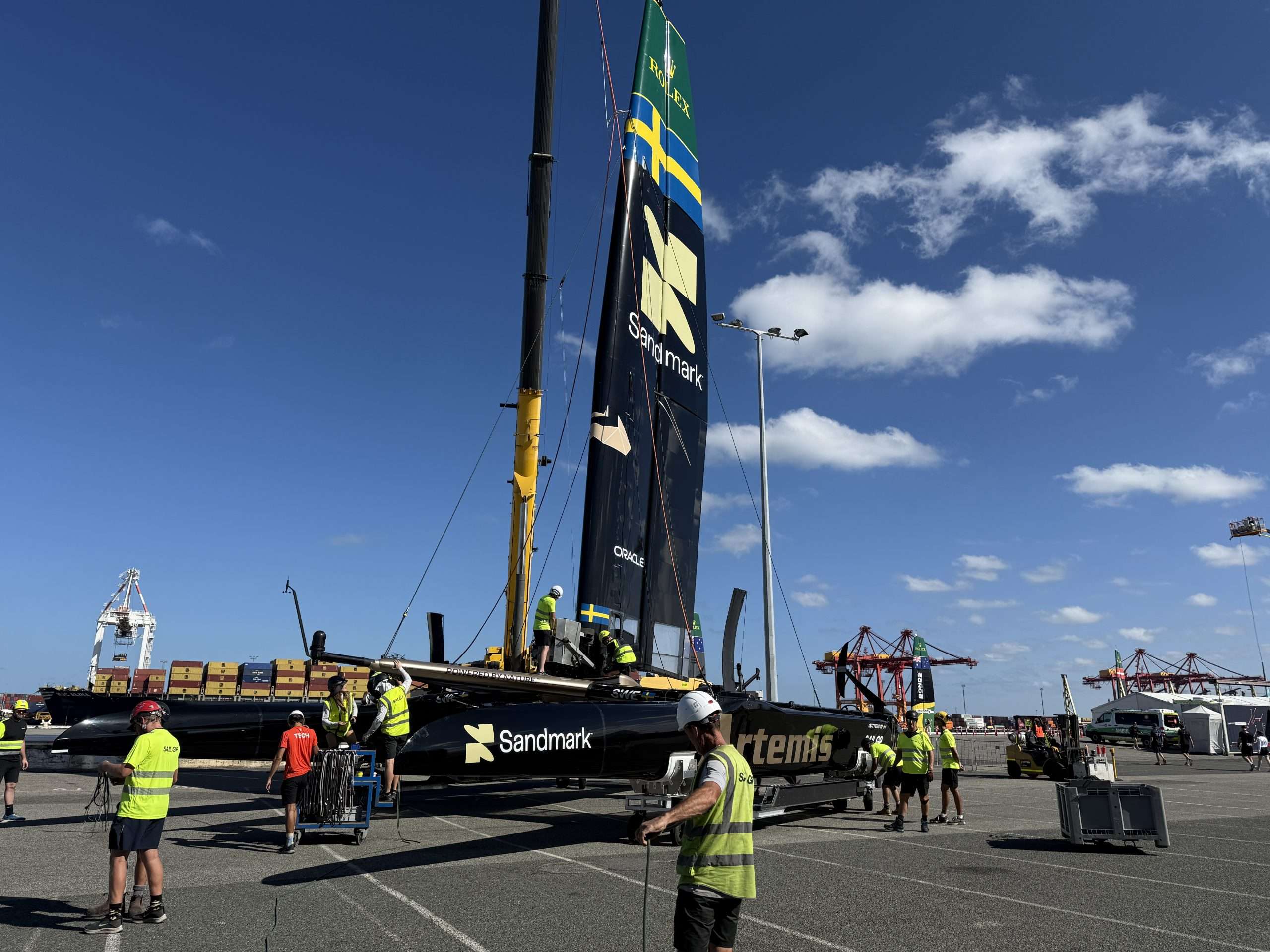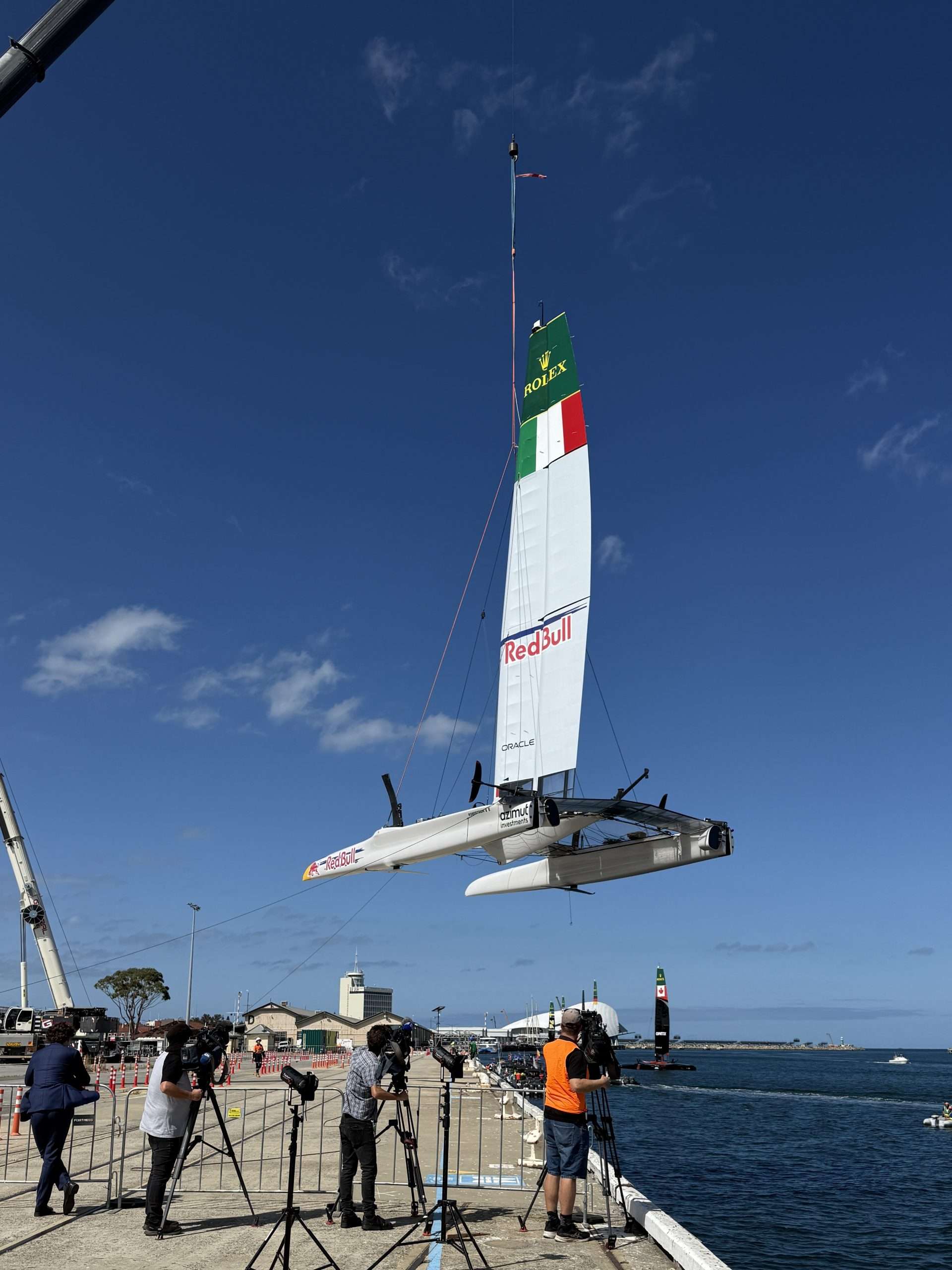 Each boat has its own hanger. Two large cranes lift the boats in and out of the water before and after sailing sessions. We had the opportunity to witness several boats being craned into the water. This is tricky manoeuvre and with each boat worth over 5 million AUD$, there is no room for error.
