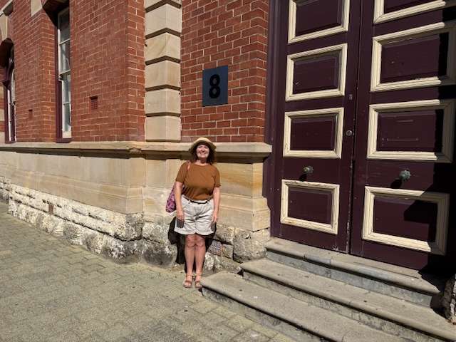 Eileen Mahony outside Old Customs House, Fremantle