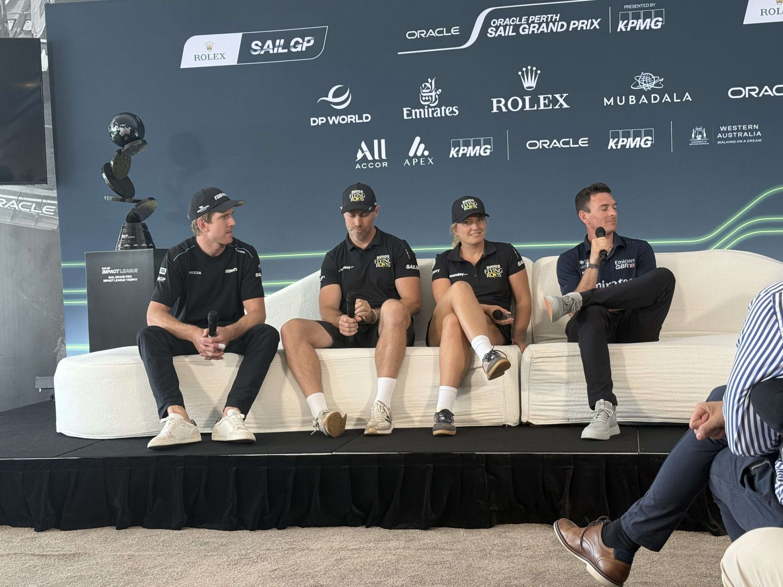 At a Presser this morning I got to hear all the head honchos and some of the top sailors waxing lyrical about the weekend racing challenges. Sir Russell Coutts, co-founder with Oracle’s Larry Ellison of SailGP, spoke. Then John Carey, State Minister, waved the flag obo the State Government who have helped big time to get this event for the State. Then we heard from the sailors who make these boats fairly foil and fly. They couldn’t stop talking about the Freo Doctor.