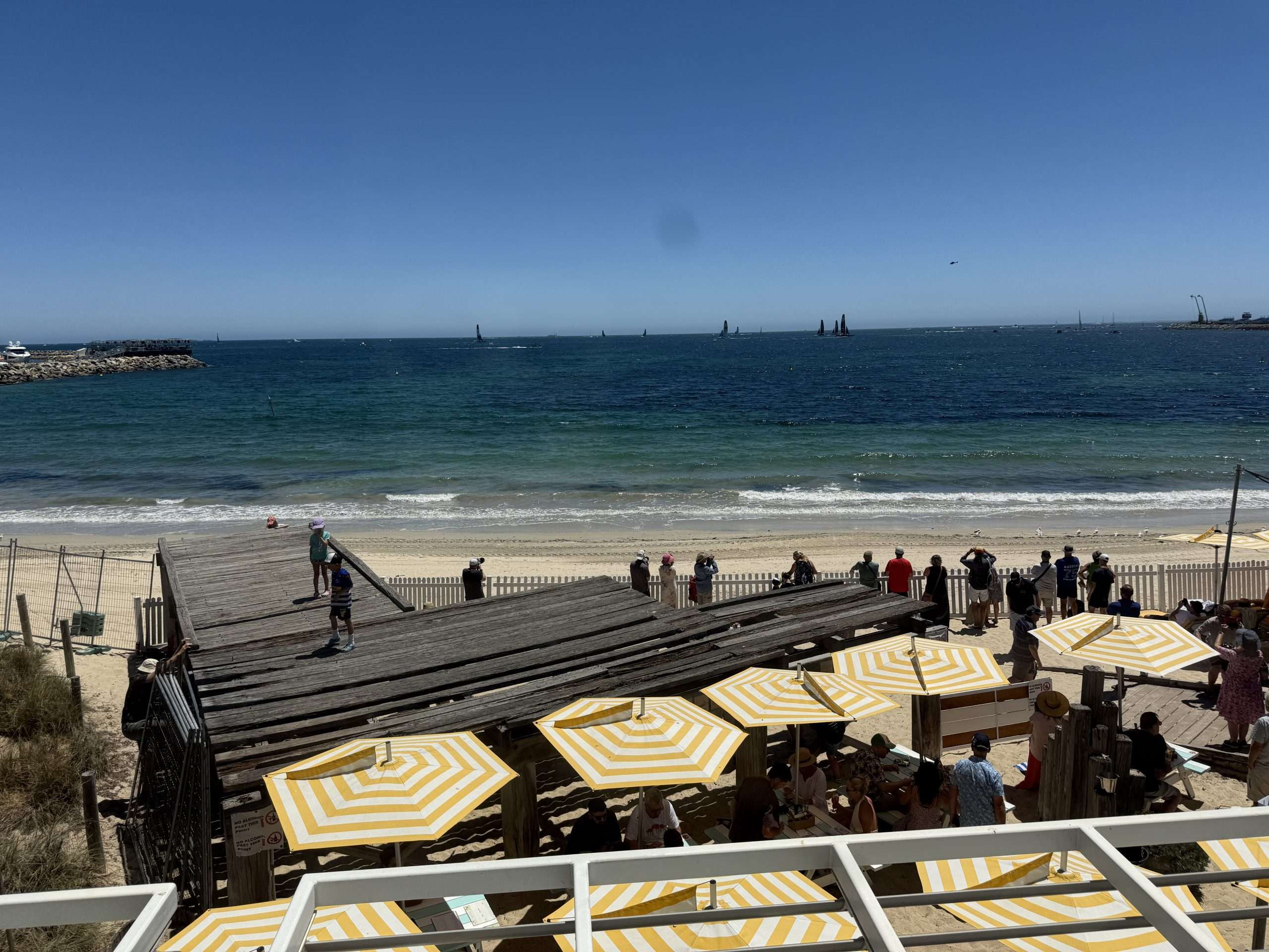 Not just the Bathers Beach area, but the whole of Freo is completely abuzz. Folk who remember, say they haven’t felt anything like it since the 1987 America’s Cup phenomenon nearly 40 years ago. And if anything, this is even more exciting. For starters, you can actually see the boats from the shore and the viewing from the grandstands is superb. But you can also watch the racing from the comfort of your own living room, including on free to air SBS starting at 1 pm Freo time, each day!
