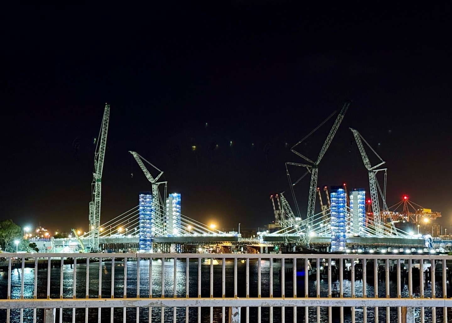 And then yesterday, as a ferry ferried underneath on its way to the Port, things started to fall into place as a large crane bearing the missing puzzle piece hovered thrillingly over the gap!
