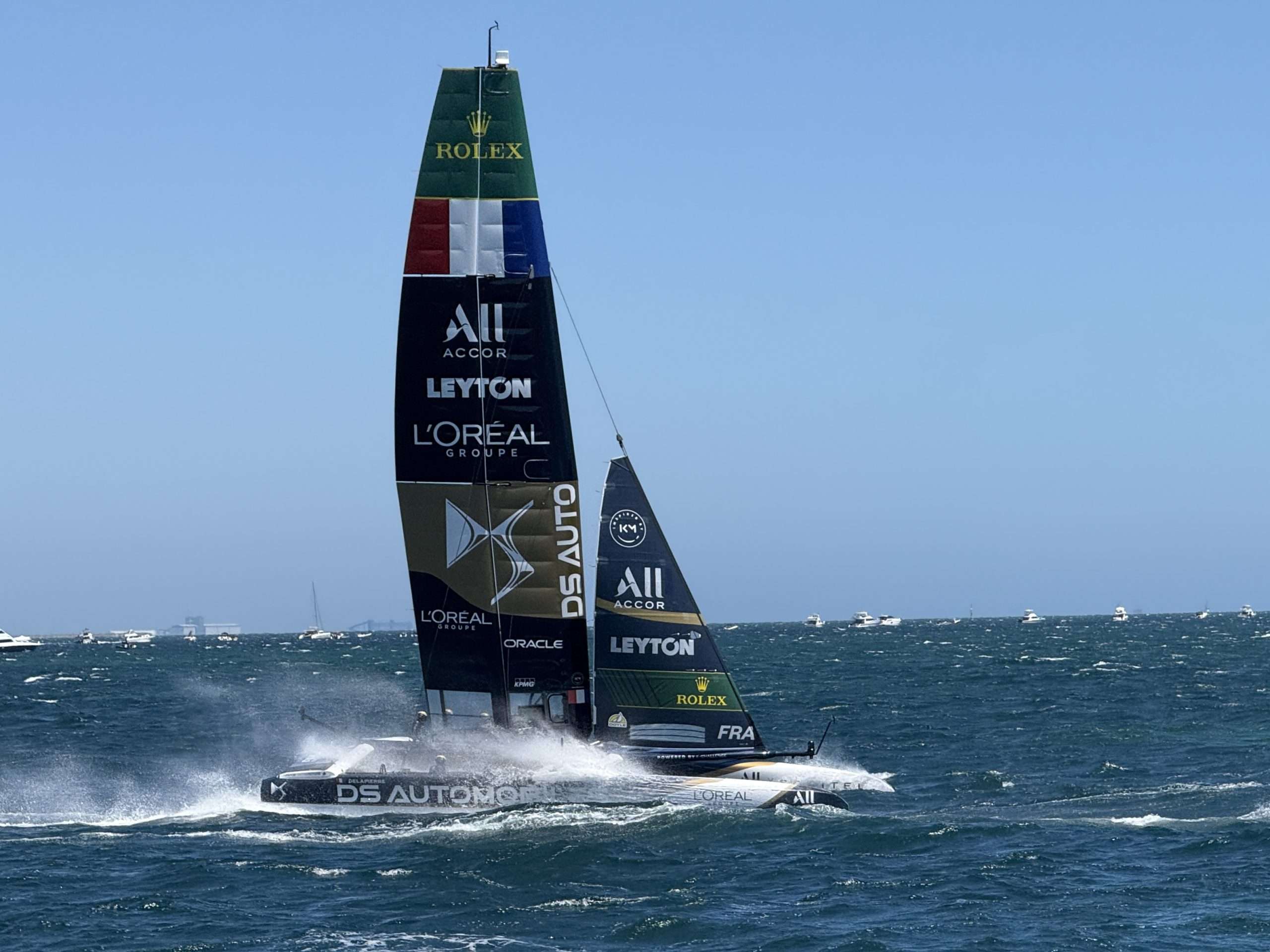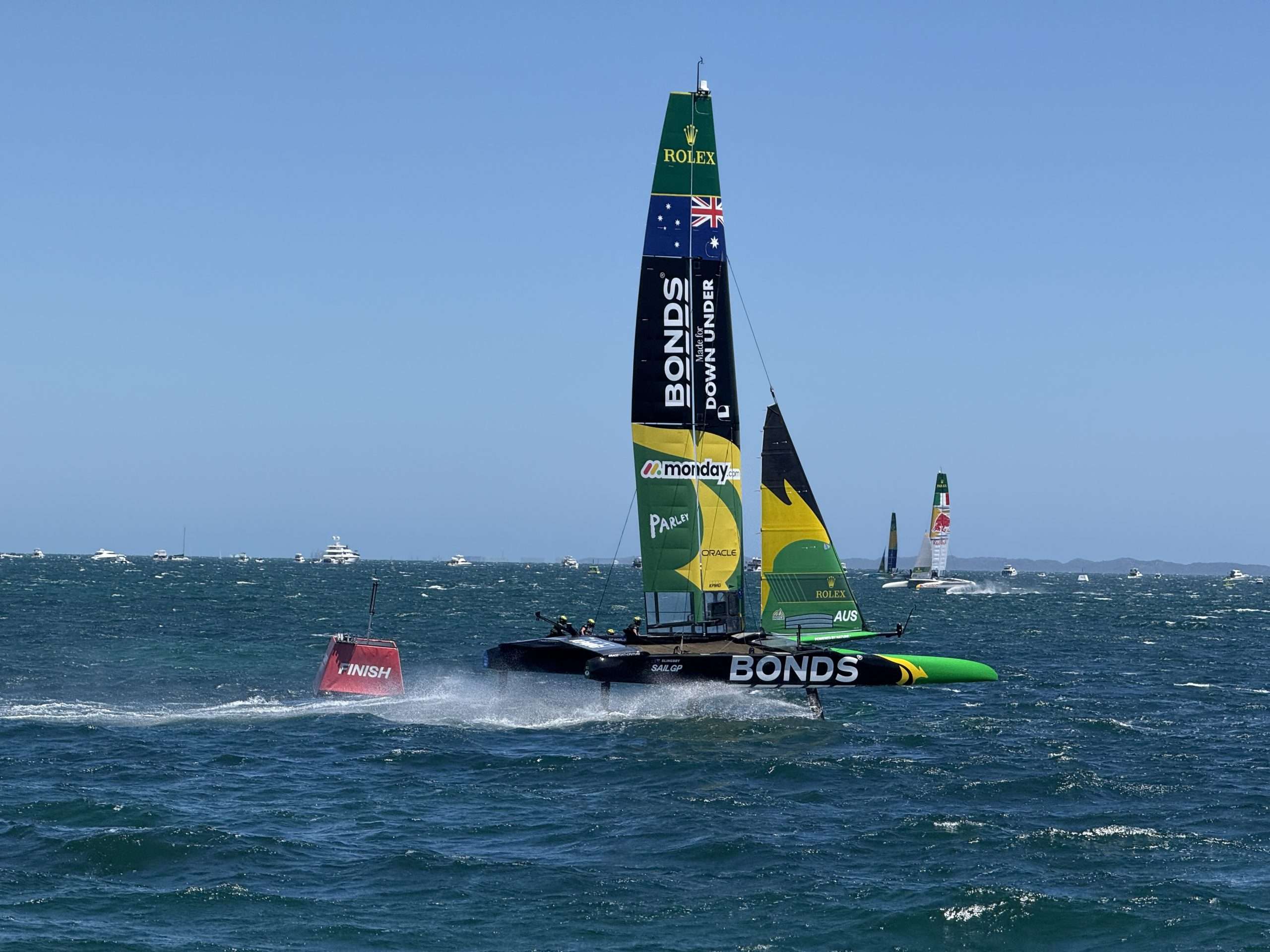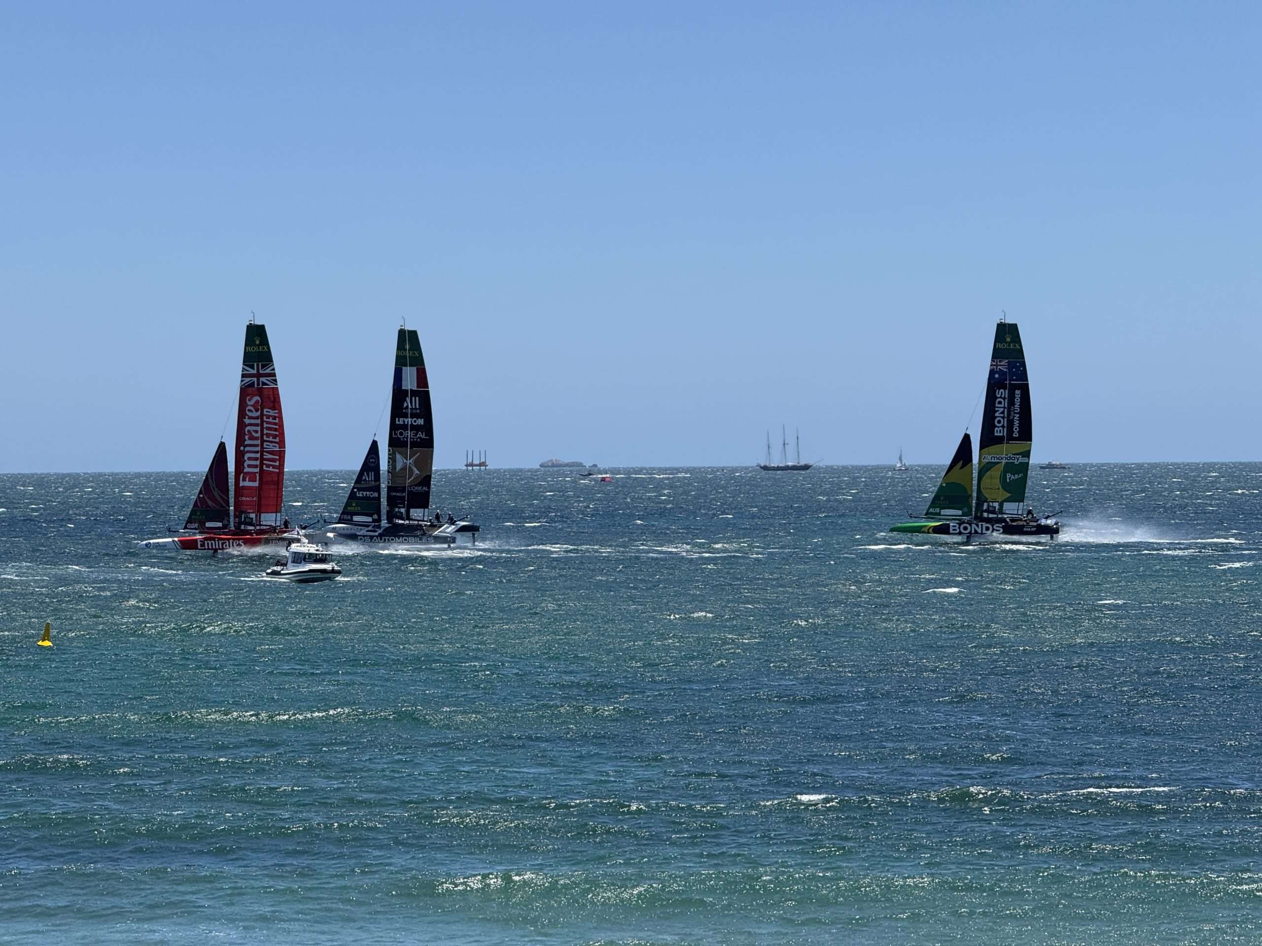 Overnight, Artemis Sweden looked a moral to finish the first three races in the top three and make the Final, but it didn’t work out that way. EMIRATES GBR turned on a very consistent two day performance, as did the French. Then the Aussies in BONDS Flying Roos surprised some, and certainly pleased their supporters, by skipping home in the last of the qualifiers to make the top three. So the Final winner-takes-all race, with an $800,000 winner’s purse, was a sail off between Emirates GBR, DS Automobiles France and BONDS Flying Roos.