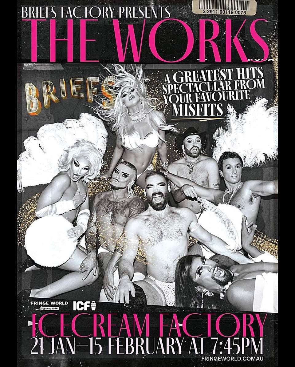 Don’t miss The Works. It’s Brief Factory’s 18th year performing, and is one of the sparkliest, sassiest show this side of the Nullarbor. Spoiler alert if you sit near the stage—you’ll get soaked in the final act!