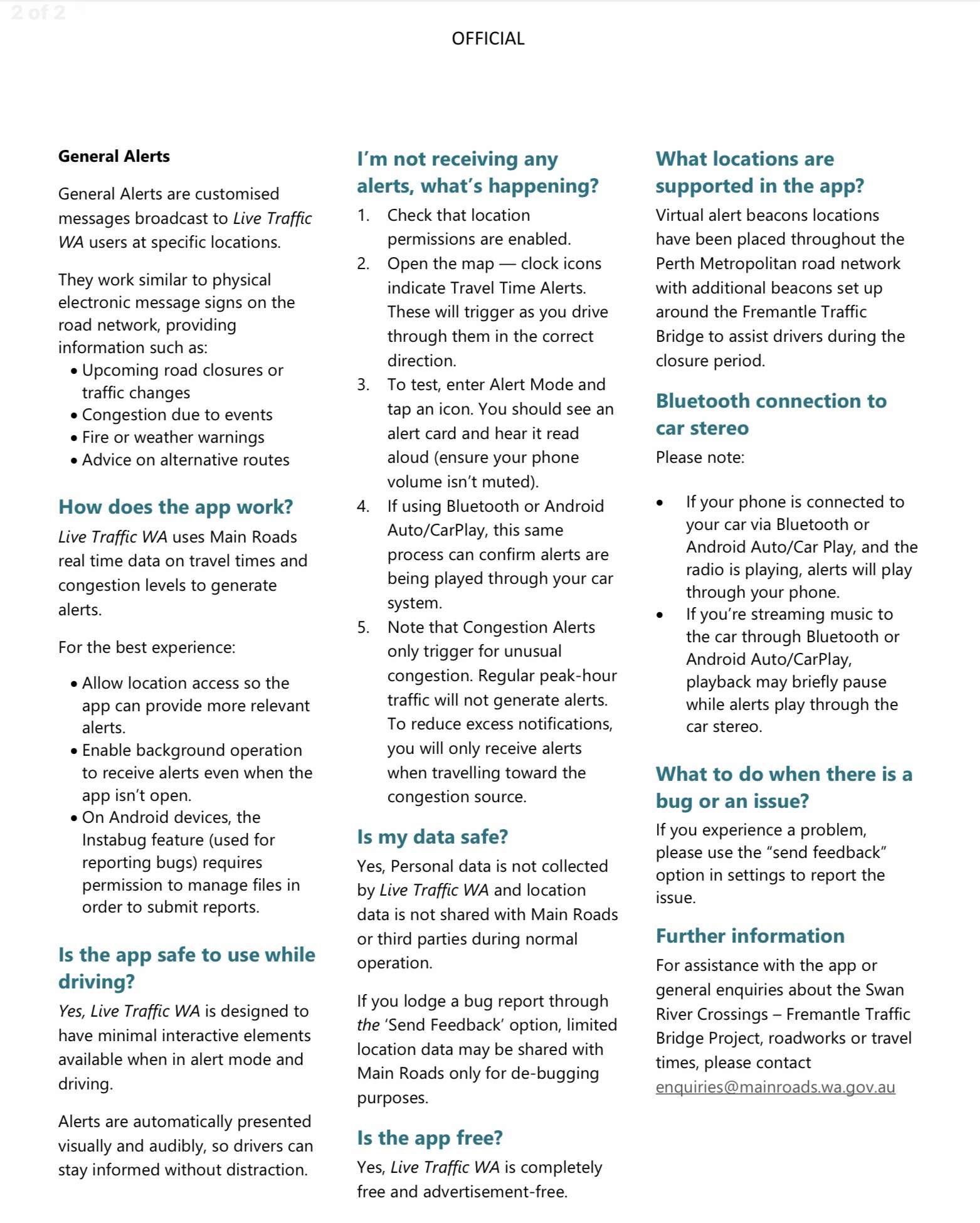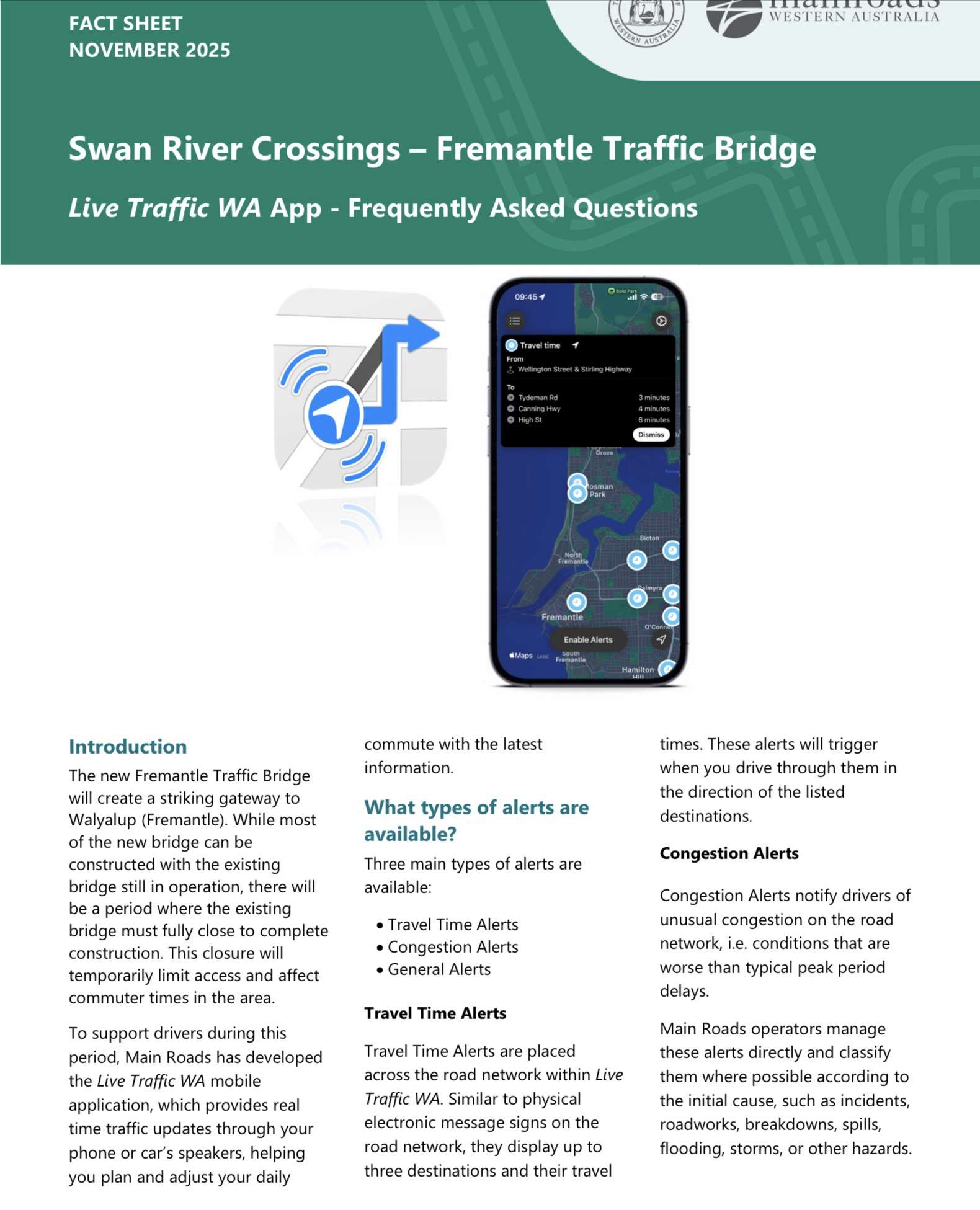 To support drivers while the OFTB is closed and the NFTB is being completed over the next 12 months from 1 February, Main Roads WA has developed the Live Traffic WA mobile app, which provides realtime traffic updates through your phone or car’s speakers, helping you plan and adjust your daily commute with the latest information. Here’s more info on downloading and using the app. Btw, it’s live now!