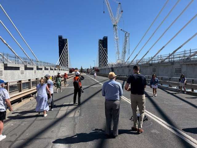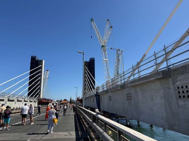 The assembly’s aim was variously to shed a tear or two on the occasion of the formal closure of The Old Bridge, and to be impressed with the fab civil engineering feat that the replacement Fremantle Traffic Bridge represents and to admire some of its bells and whistles.