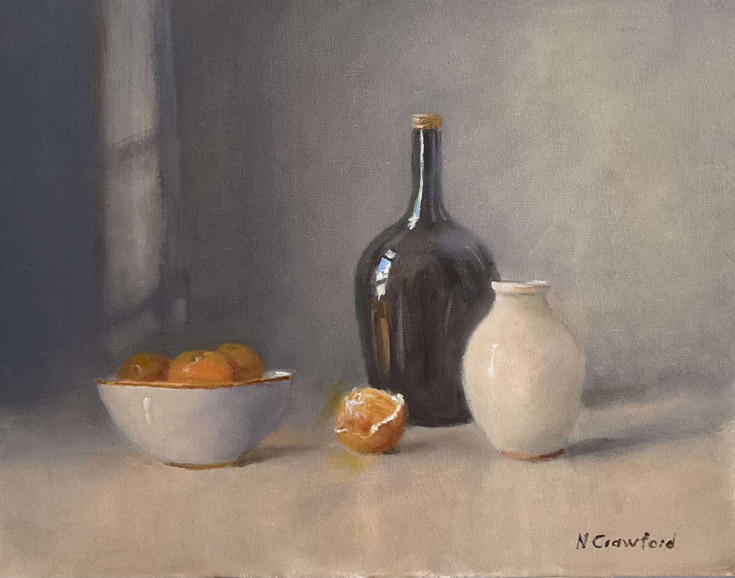 Working from her home studio in Fremantle, Nellie Crawford is inspired by the domestic objects and scenes of everyday life that we see every day. Her latest work explores the beauty to be found in these everyday objects. These paintings are characterised by minimal composition, muted tones, soft edges and atmospheric effects which invite contemplation and reflection.
