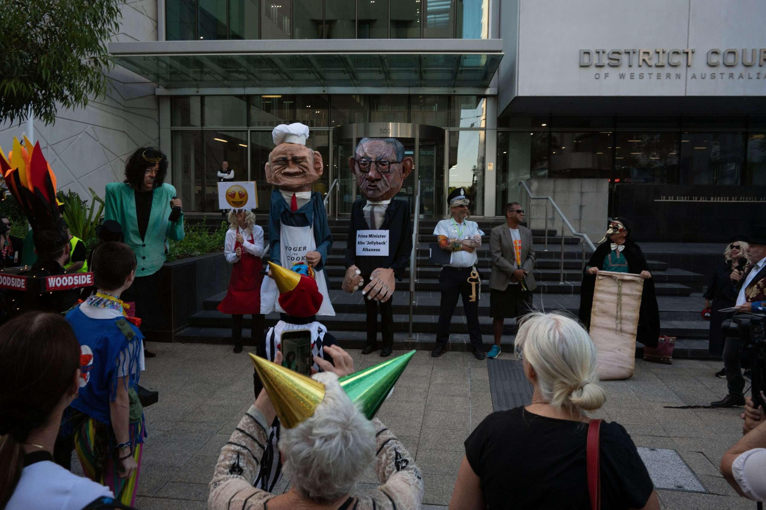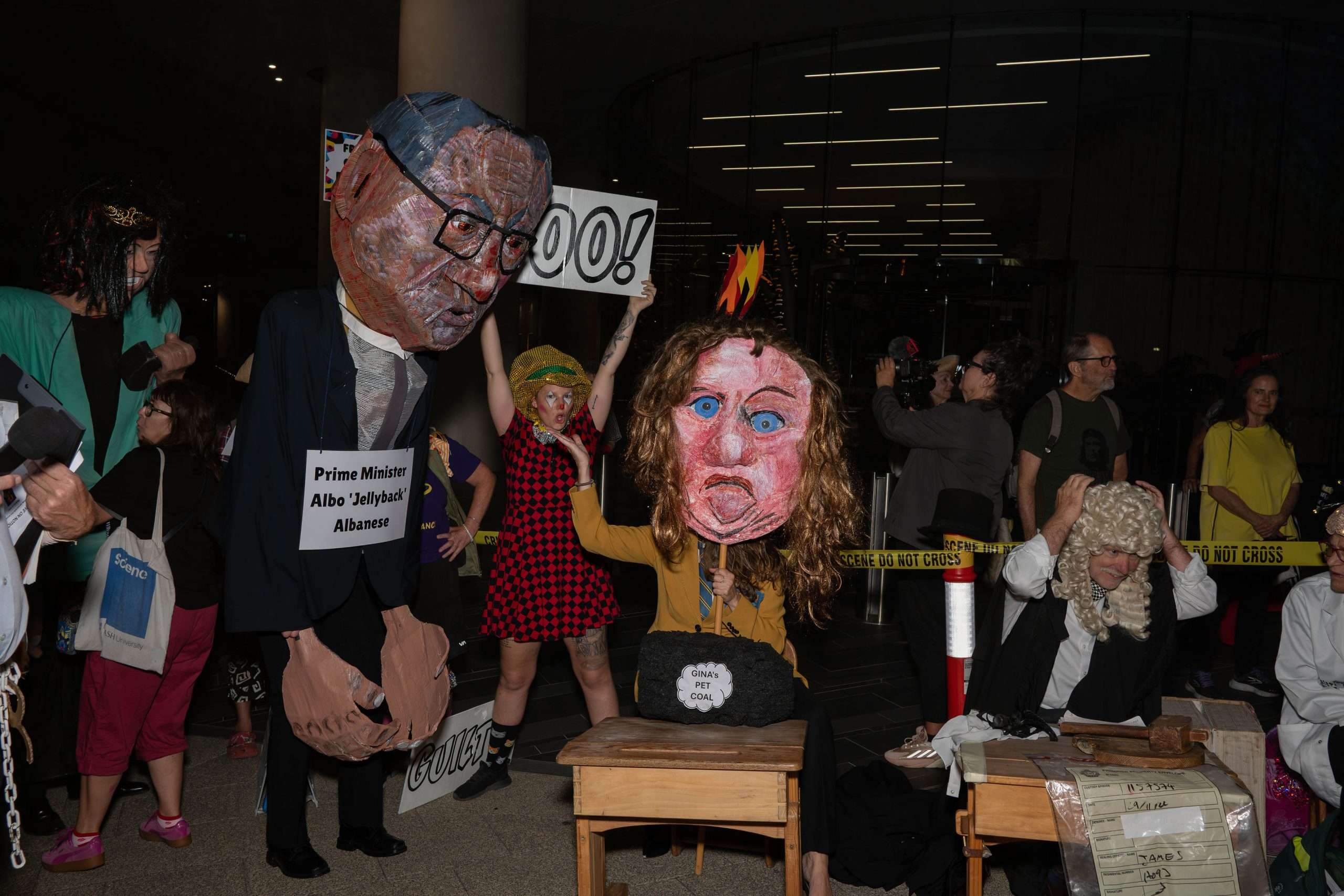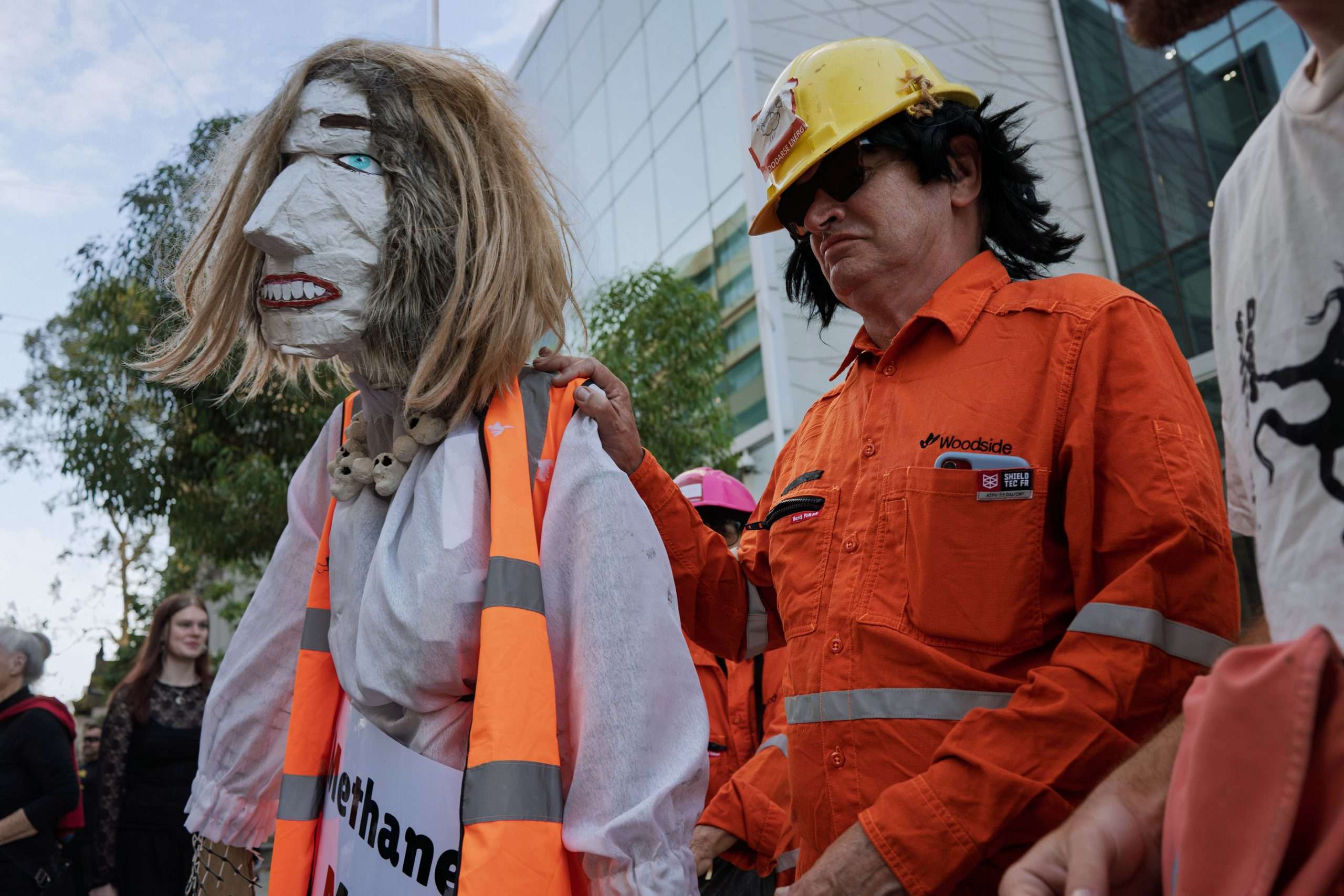 Revellers had earlier been advised that they would meet ‘some of WA’s most notorious real life eco-criminals during a fun-filled satirical stroll through the heartland of the Western Australian petrostate (the world’s third largest exporter of LNG gas after Qatar and the US!)’.