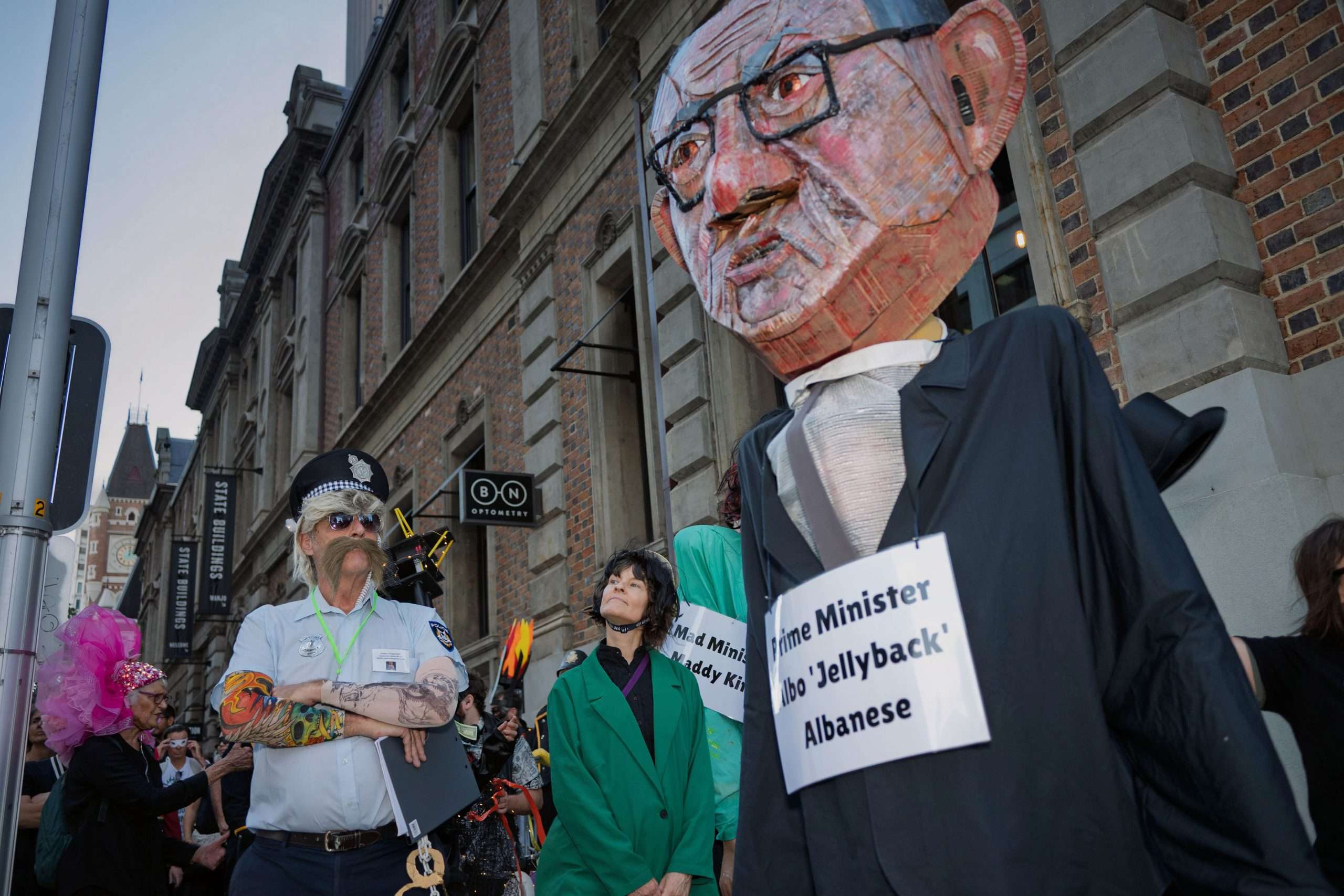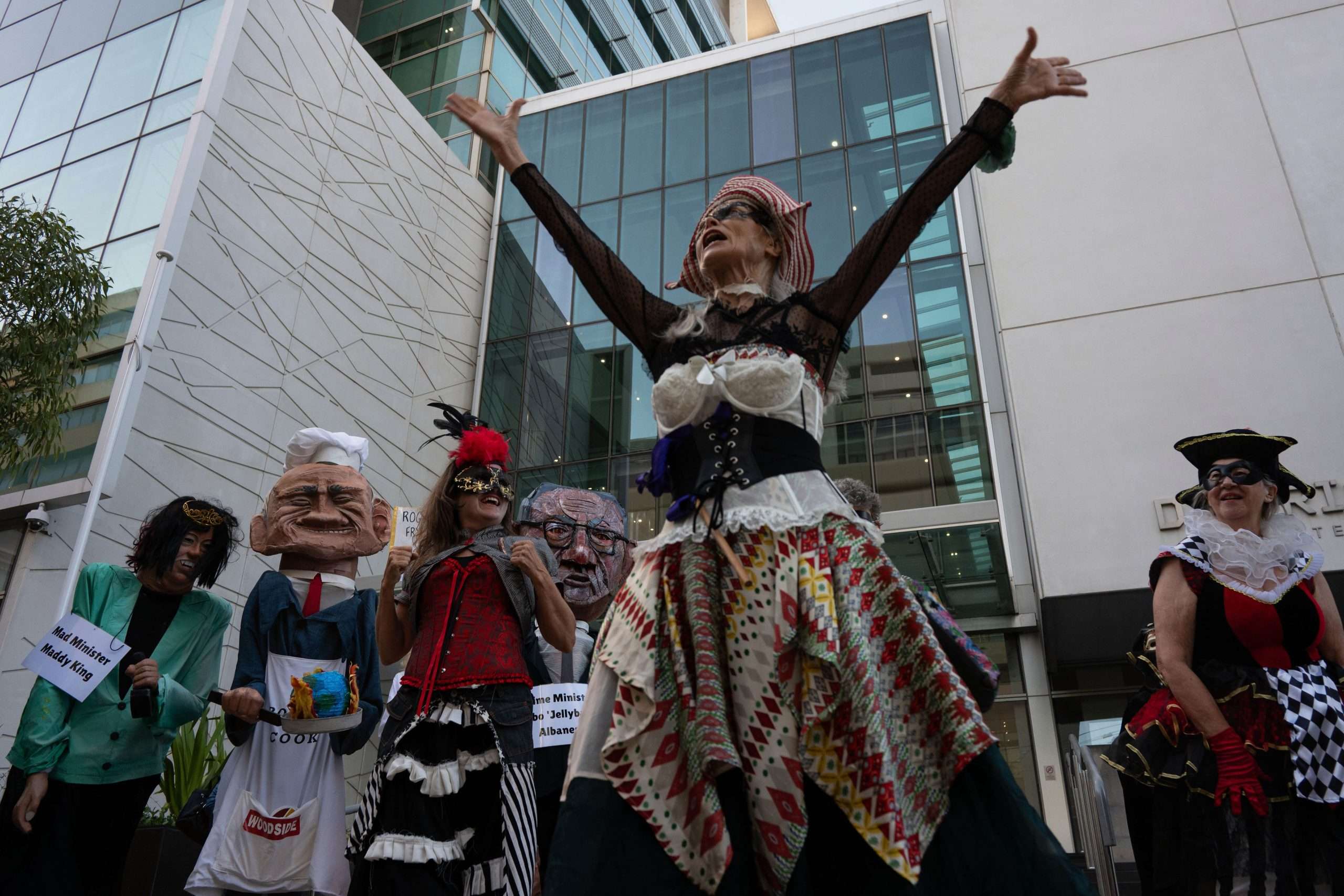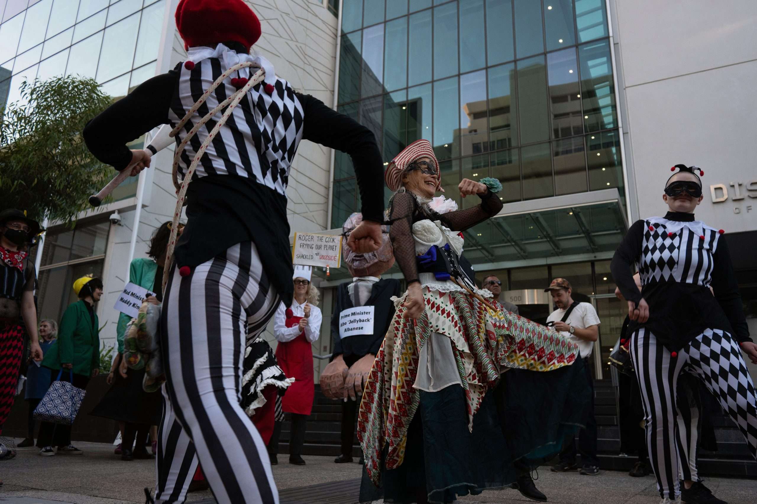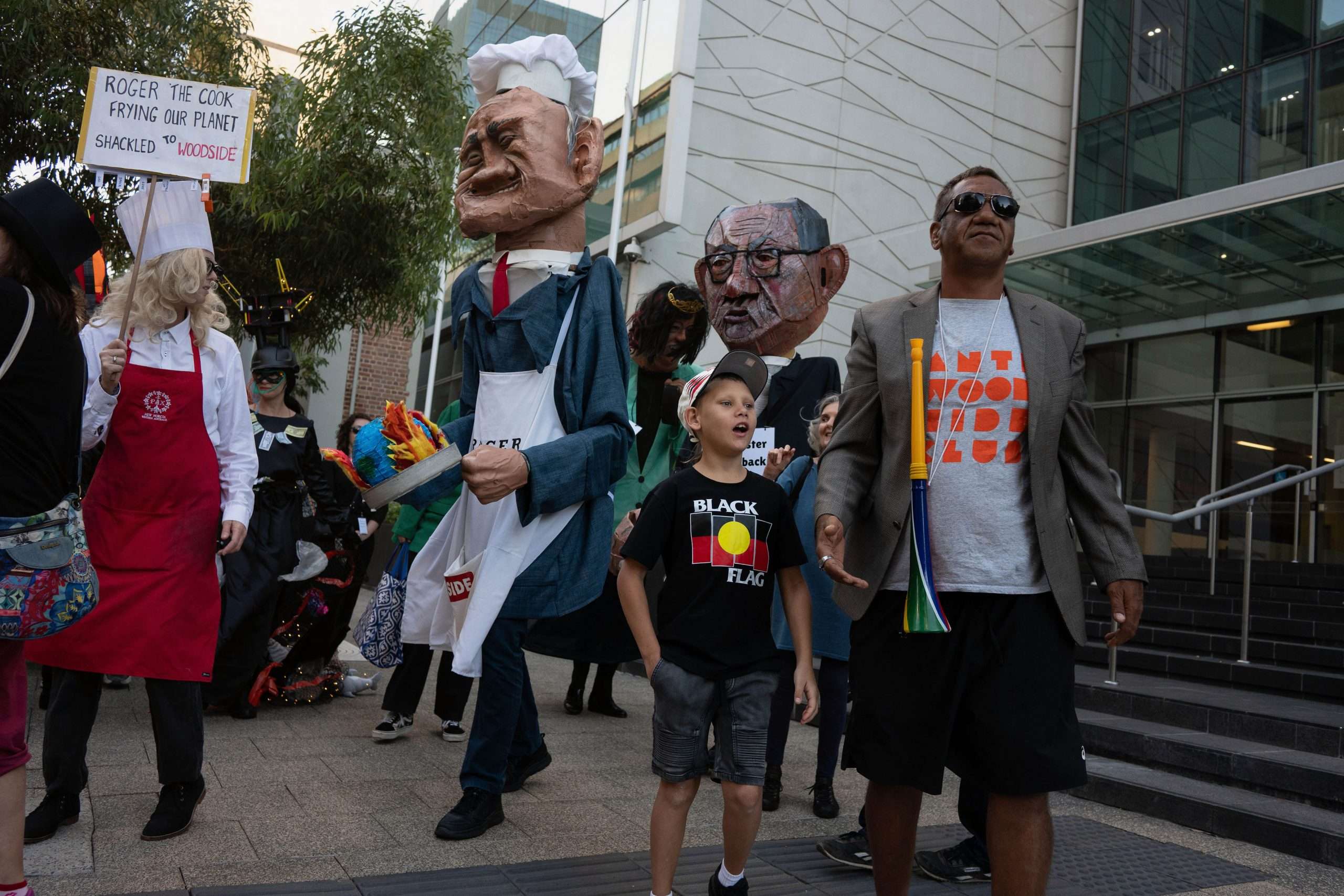 Revellers had earlier been advised that they would meet ‘some of WA’s most notorious real life eco-criminals during a fun-filled satirical stroll through the heartland of the Western Australian petrostate (the world’s third largest exporter of LNG gas after Qatar and the US!)’.