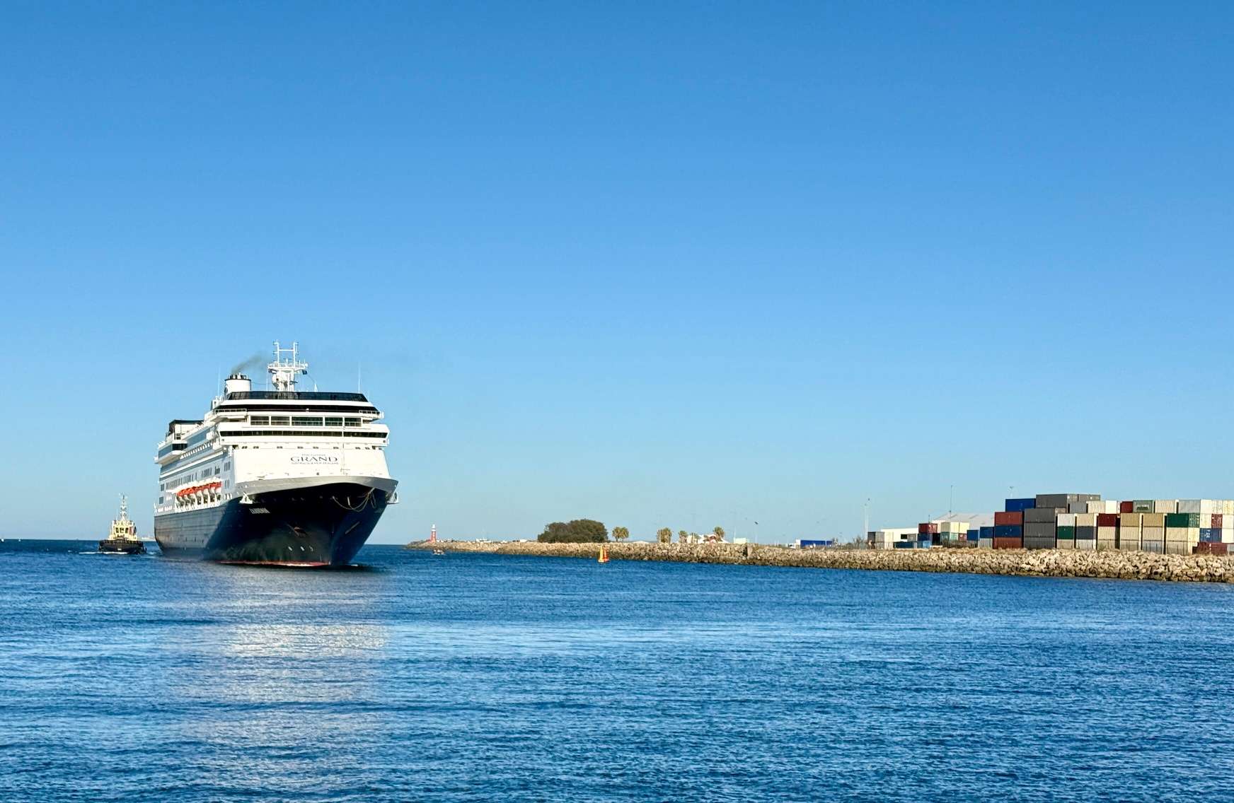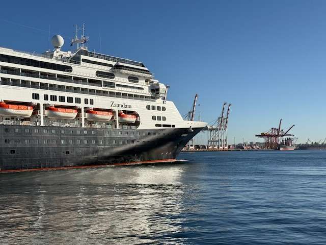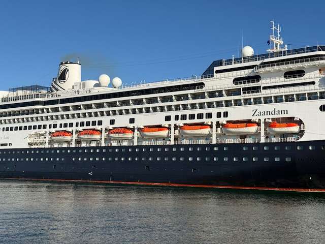 MS Zaandam arrived this morning around 7.30 am. As she glided into port, the morning sun glinted on her distinctive navy-blue hull.