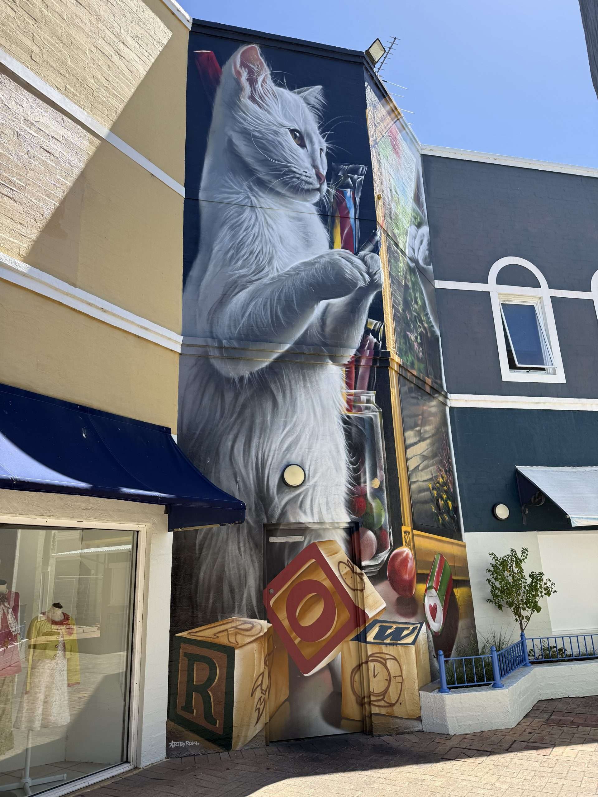 There’s a new cat in town. The talented artist artbyrow created this 2-story high amazing cat mural a few months ago.
