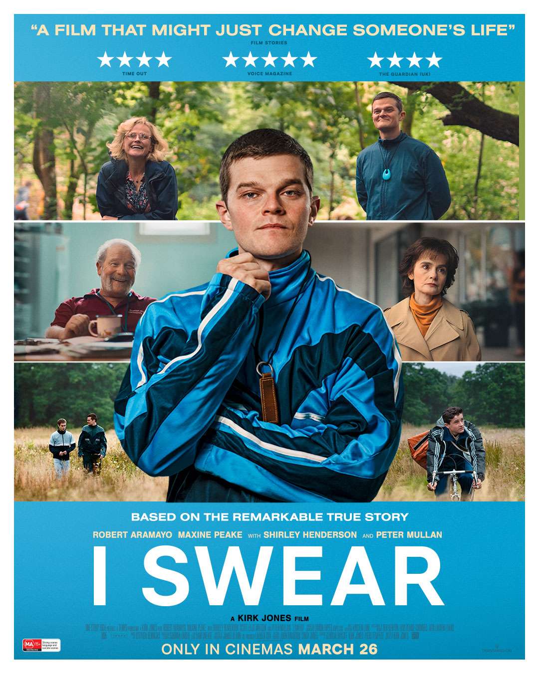 “Based on the true story, I SWEAR is a moving, uplifting account of the life of John Davidson, a Tourette’s Syndrome campaigner who grew up with the condition in 1980s Scotland, at a time when it was little known and misunderstood. Featuring outstanding performances from Robert Aramayo, Peter Mullan, Shirley Henderson and Maxine Peake, I SWEAR is a frank, funny and touching story about the transformative power of friendship and community.”