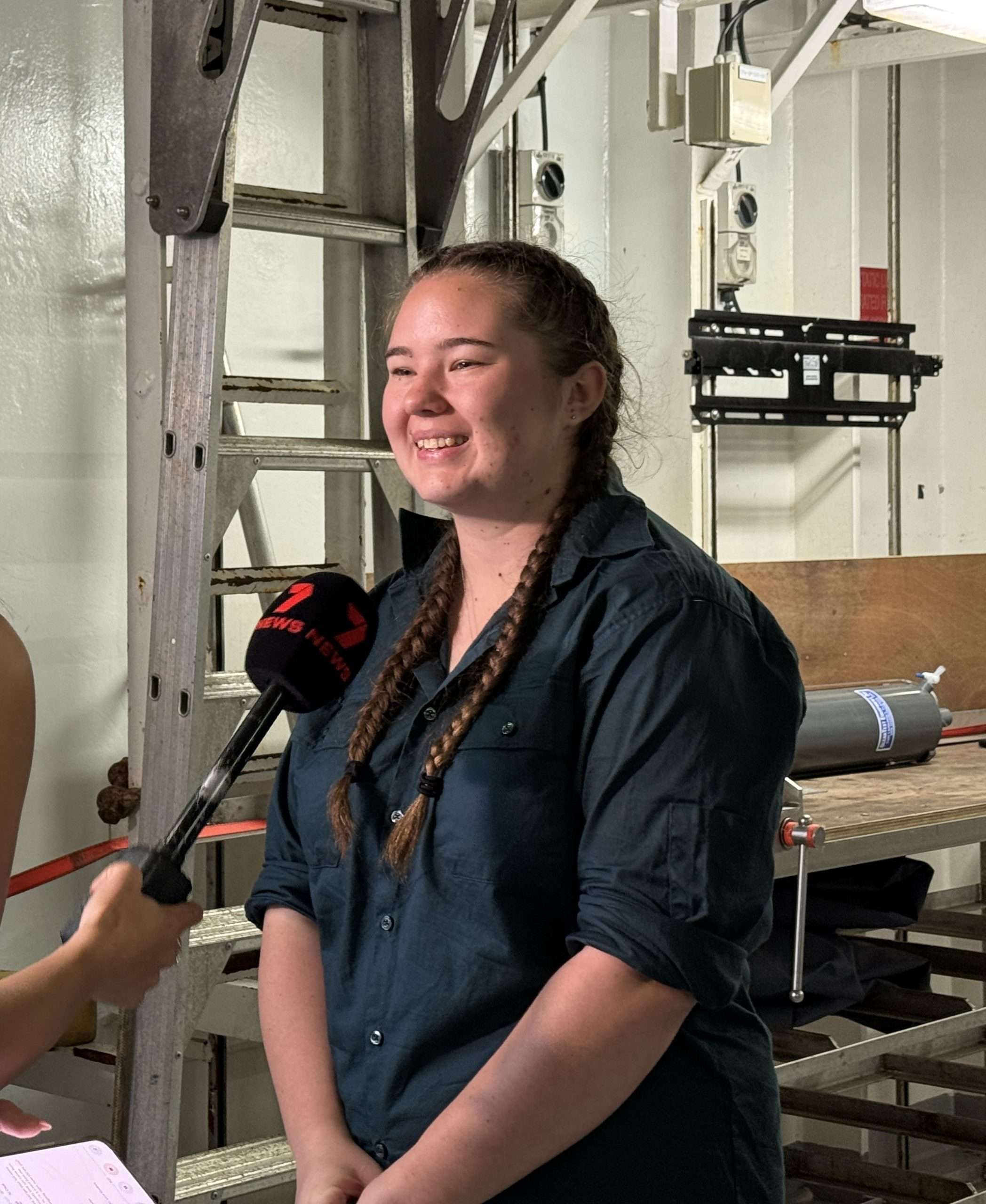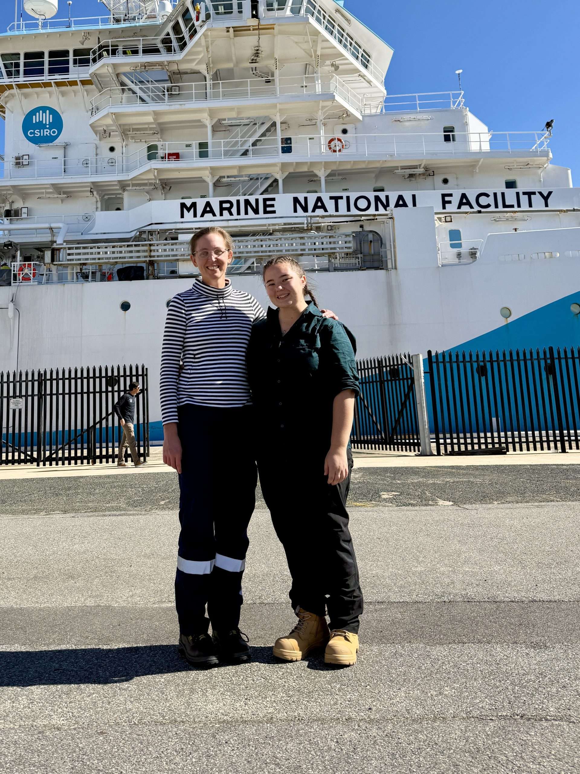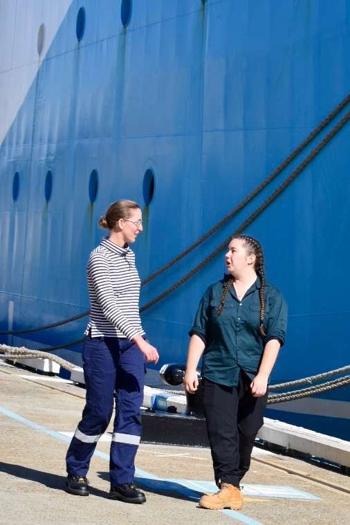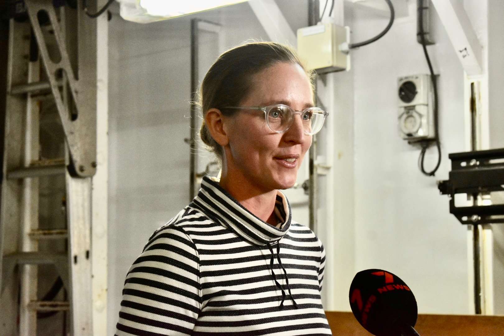 Two of the lucky students, Kendall Messer, a 34 year old final year master’s student from UWA and Jasmine O’Neill, an undergrad student from UOW, were part of the media tour. Kendall and Jasmine will join 18 other students who will gain hands-on experience at sea, conducting real-world research to help shape Australia’s next generation of marine experts. They will be supervised by six trainers. This is part of a national sea-training program. During the voyage students will be trained in the vessel’s scientific systems and conducting real-world science including seafloor mapping, sediment sampling and oceanographic surveys.