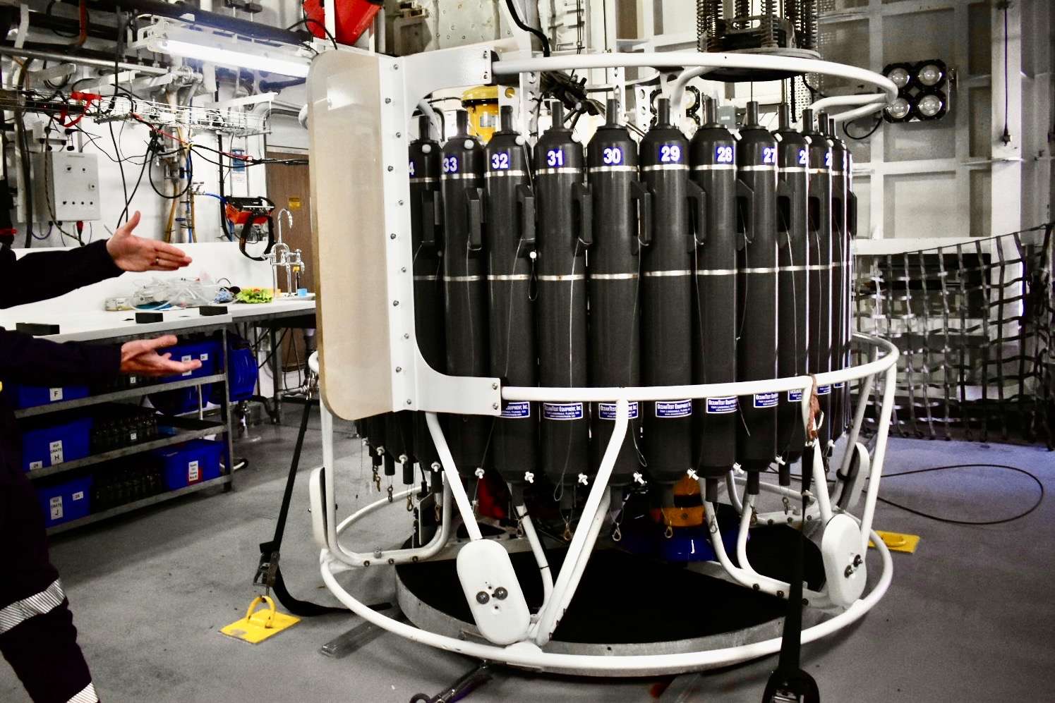Pier then showed us the CTD machine that is lowered into the deep ocean at a depth of between 1500 and 6000 metres to sample water.