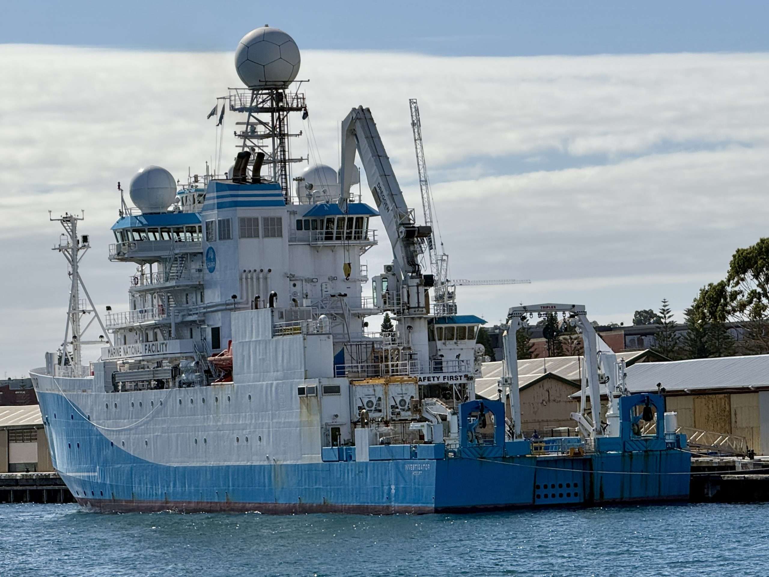 You may have seen the bright blue (RV) Investigator in Fremantle since last weekend. She’s Australia’s only research vessel and operates out of Hobart.