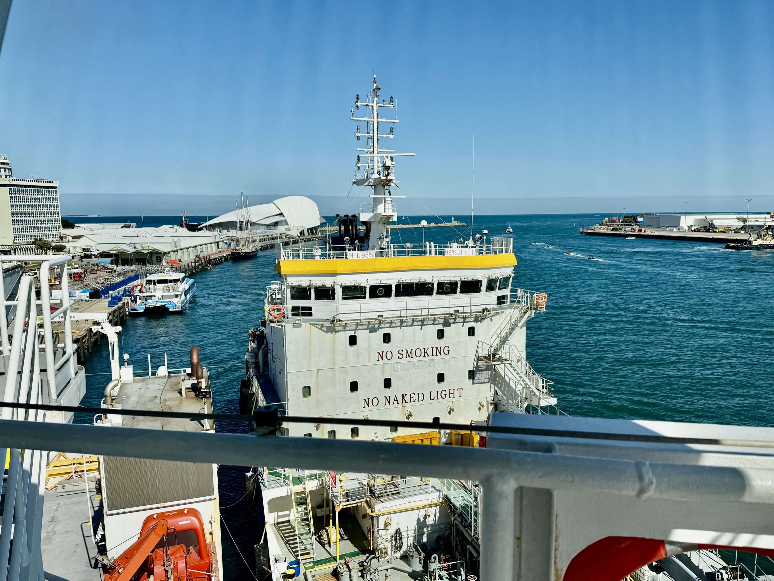 The vessel wasn’t open to the public on this occasion, just the Media. Here she is alongside Absolute, the Port of Fremantle fuelling ship.