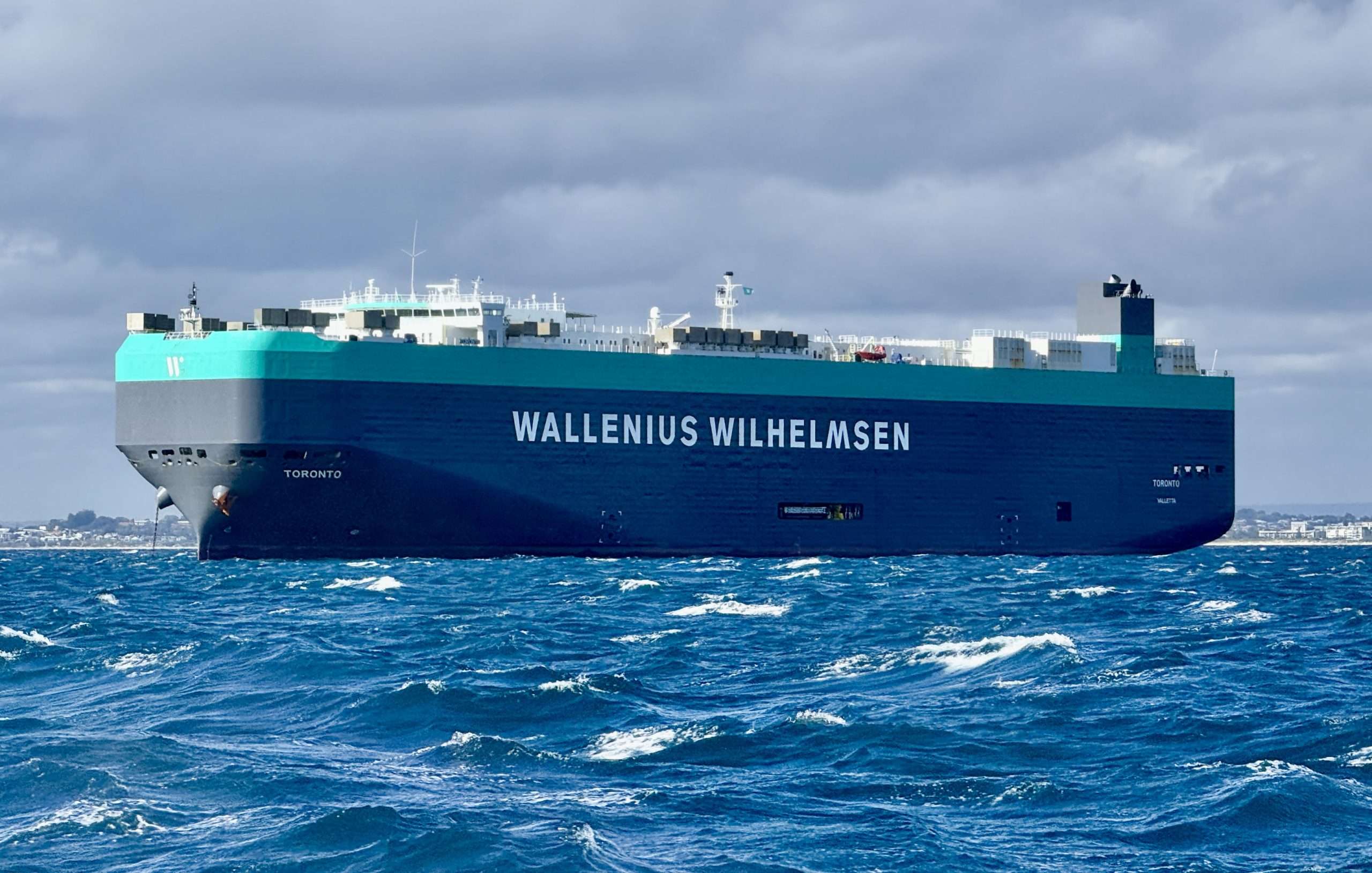 Freo Today. 23 April 2026. Meet Toronto, a mighty 200m RO-RO – and she’s not from Canada! She is part of the Wallenius Wilhelmsen fleet. WW is a Norwegian/Swedish company. Wilhelmsen’s side of the company has a famous rule – all their vessels’ names start with the letter T. Toronto joins others in the fleet with city names and others again with names drawn from Chinese and Japanese history and Nordic mythology. The other side of the company, Wallenius names vessels after operas: like Madame Butterfly and Carmen. Toronto was on anchor in Gage Roads on Monday afternoon, when this fab pic was taken by Jean Hudson. Yesterday Toronto tied up in port. If you happened to see her you will have remarked just how BIG she is. Today she sets sail for Laem Chabang, Thailand.
