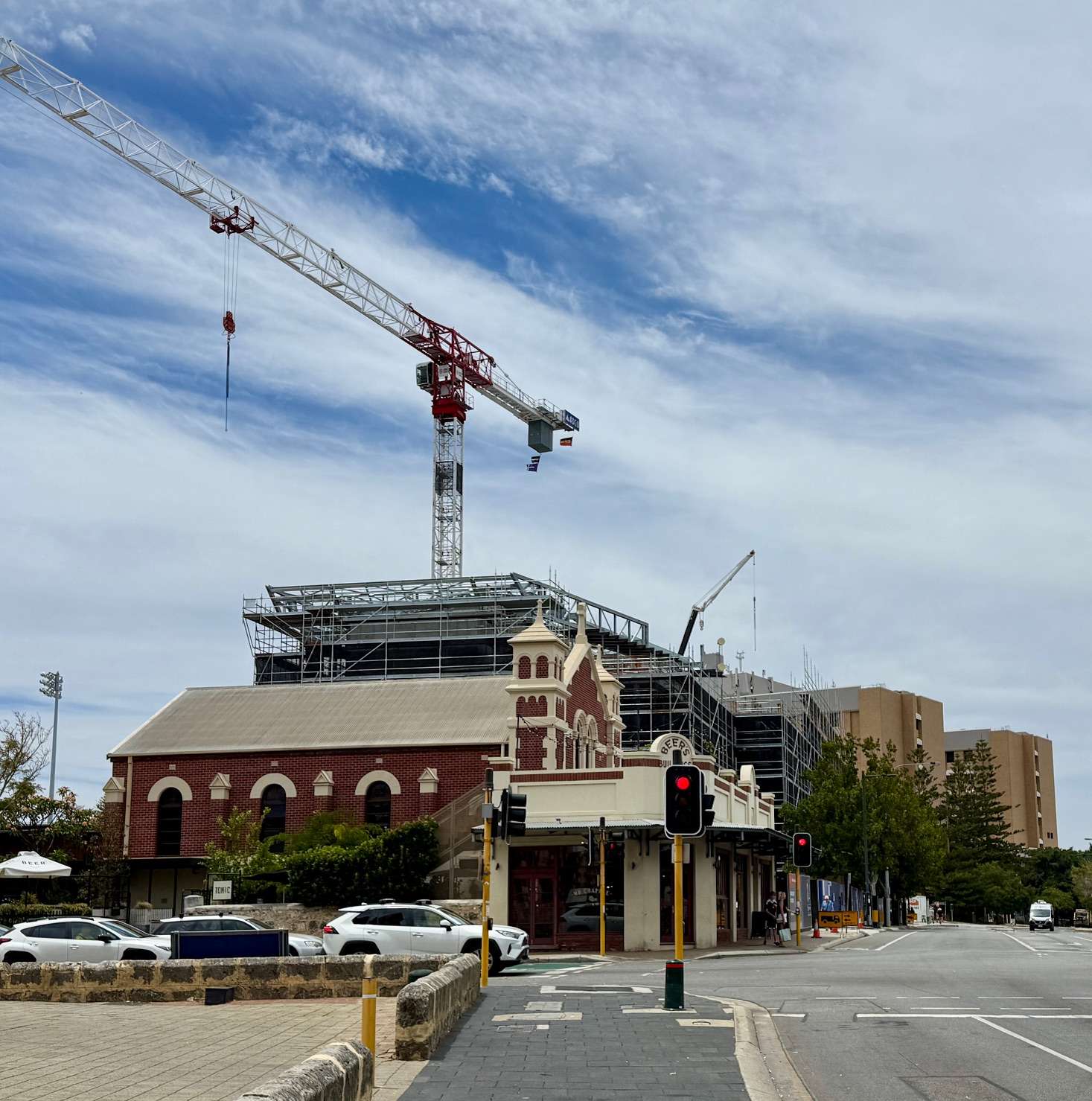 Freo Today. 9 January 2026. In the foreground we have the Old Synagogue, originally built in 1902, just 73 years into the settlement of Western Australia by the British, with the Princess Wales Wing of the Fremantle Hospital further back, built in 1975, and the new Fremantle District Police Complex now underway in 2026. Time marches on!